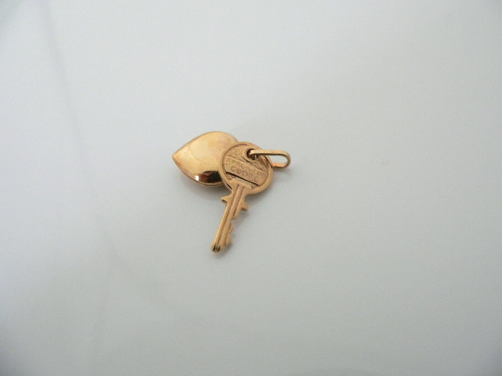 Overview: Offered for sale is a classic 14K Gold Heart Key charm. Just attach to an existing chain or charm bracelet that you already have! Wonderful present for yourself or anyone you love! Will surely delight! Particulars: Weight: 2.4 Grams Size & Measurements: Metal & Hallmarks: 585 / Italy Solid 14K Gold Please check out my other unique and interesting items on sale.