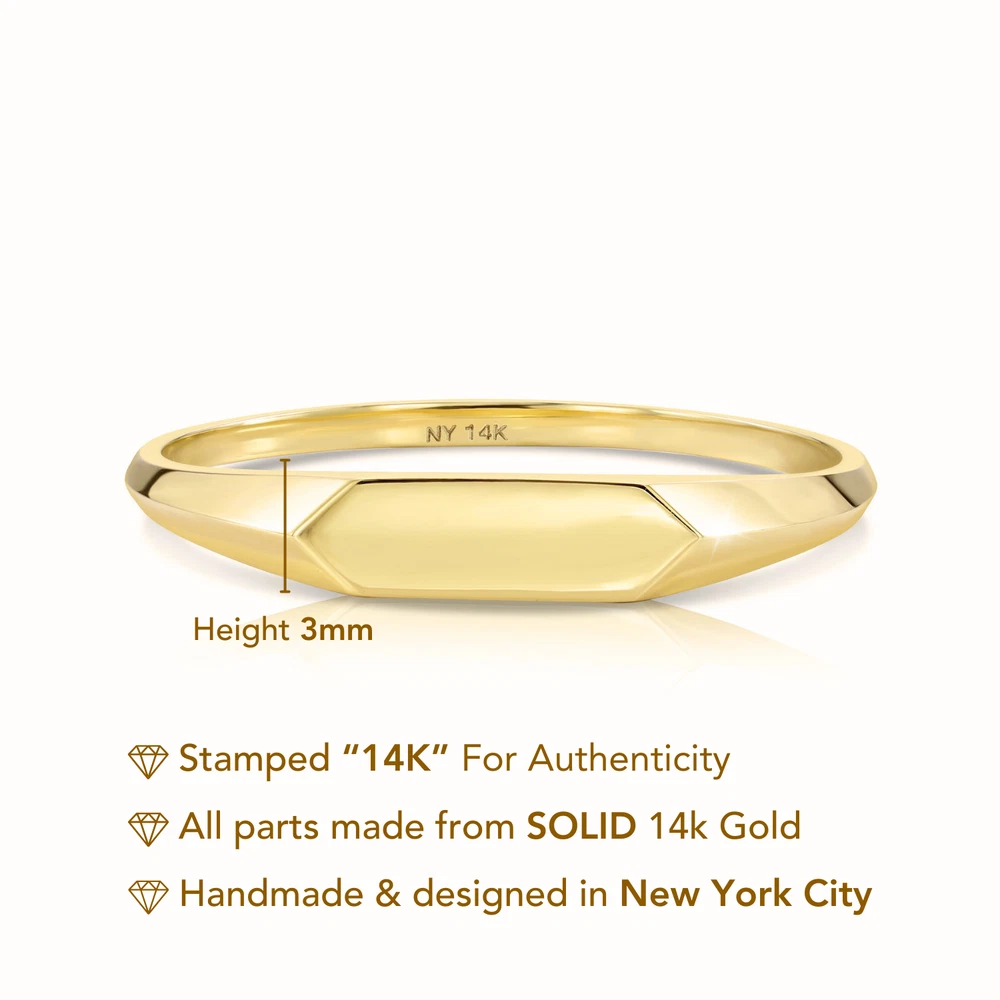 Wholesale: Yes Metal Purity: 14k Base Metal: Yellow Gold, Gold Occasion: Anniversary, Birthday, Christening, Christmas, Confirmation/Communion, Engagement, Father's Day, Graduation, Mother's Day, Valentine's Day, Wedding Handmade: Yes Type: Ring Color: Yellow, Gold Main Stone Width: 10 mm Brand: TILO JEWELRY Shape: Signet Material: 14k Solid Gold Country/Region of Manufacture: United States Features: Stackable, Hand Polished, 14K Gold Signet Ring Metal: Yellow Gold Main Stone: No stone Theme: Minimalist, Special Occasion, Beauty, Bohemian, Colleges & Universities, Family & Friends, Fashion & Costumes, Hip Hop, Holiday, Love, Retro Style: Band, Cocktail, Pinky Ring, Signet, Minimalist, Statement Main Stone Length: 3 mm