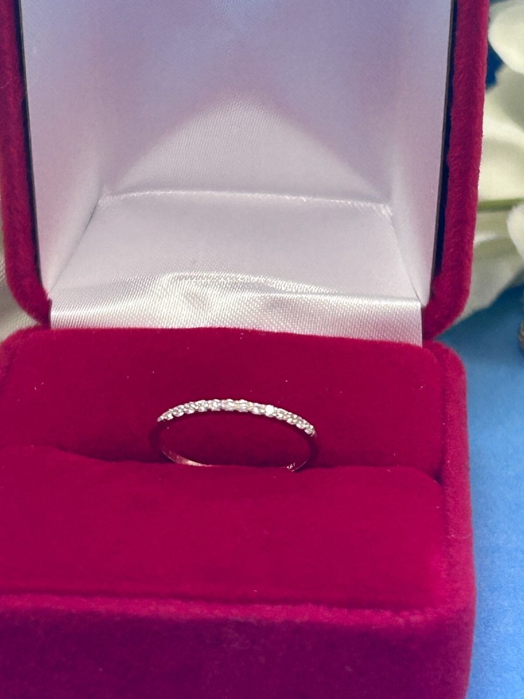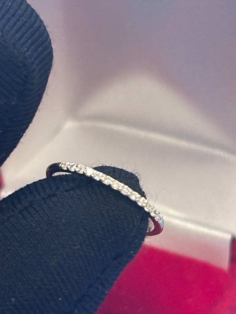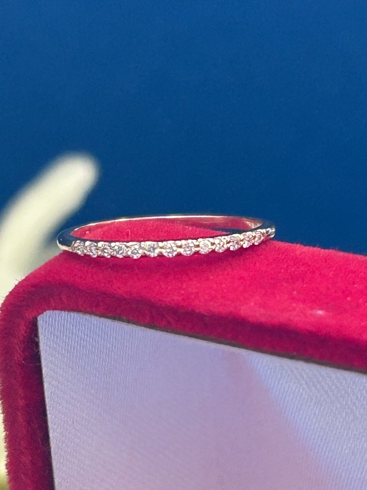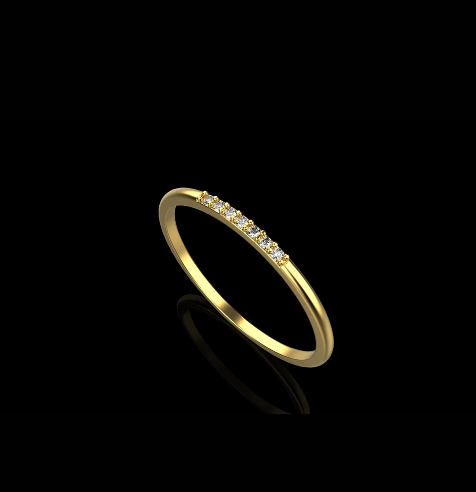 eBay Ecommerce Description 14K Solid Gold 13 Diamond Wedding Ring Half Eternity Stylish Wedding Band for Her Product Description TIMELESS AND ELEGANCE WEDDING RING: When it comes to symbolizing love and commitment, few things compare to the beauty and elegance of a diamond ring. Our 14k solid gold 13 diamond wedding ring is a stunning piece that serves as a stacking diamond wedding band, a diamond promise ring, or a thoughtful gift for her. With its delicate yet dazzling design, this ring is the perfect representation of timeless elegance and lasting devotion. EXQUISITE CRAFTSMANSHIP AND BEAUTIFUL DESIGN: Crafted from 14k solid gold, this thin diamond ring exudes sophistication and refinement. It features 13 round-cut, conflict-free diamonds, each measuring 1.0mm, carefully set along the band to create a delicate shimmer. With a sleek 1.1mm width, its slim and elegant design makes it ideal for stacking or wearing alone. Whether chosen as a wedding band, promise ring, or a special keepsake, this piece is designed to be cherished for a lifetime. A VERSATILE AND MEANINGFUL GIFT: The 14k solid gold 13 diamond wedding ring is a versatile piece that complements any jewelry collection. It can be paired with an engagement ring or other stacking bands to create a personalized look that tells your unique love story. Whether given as a symbol of commitment, a heartfelt promise, or a special surprise for a loved one, this exquisite diamond ring is a gift that will always be treasured. Specifications Color: Gold Ring Width: 1.1mm Ring Width: 1.1 mm Setting Style: Pavé Metal: Yellow Gold Material: Gemstone, Metal Total Carat Weight: .06 Carat Diamond Color & Clarity: G Color, VS2 Ring Size Options: 3 to 9 (Quarter Sizes are available) Gold Color Options: 14K White Gold, Yellow Gold & Rose Gold Number of Diamonds: 13 (Round Cut Conflict Free Diamonds, 1.0mm Each Diamond) We can also make the same ring with different quantity of Diamonds or with any gems upon your request. Please contact us if you have any customization request. 3 DIAMOND BAND https://www.ebay.com/itm/405010736006 5 DIAMOND BAND https://www.ebay.com/itm/405010743216 9 DIAMOND BAND https://www.ebay.com/itm/405010755295 We can also make the same ring with different quantity of Diamonds or with any gems upon your request. Please contact us if you have any customization request. SKU: 754