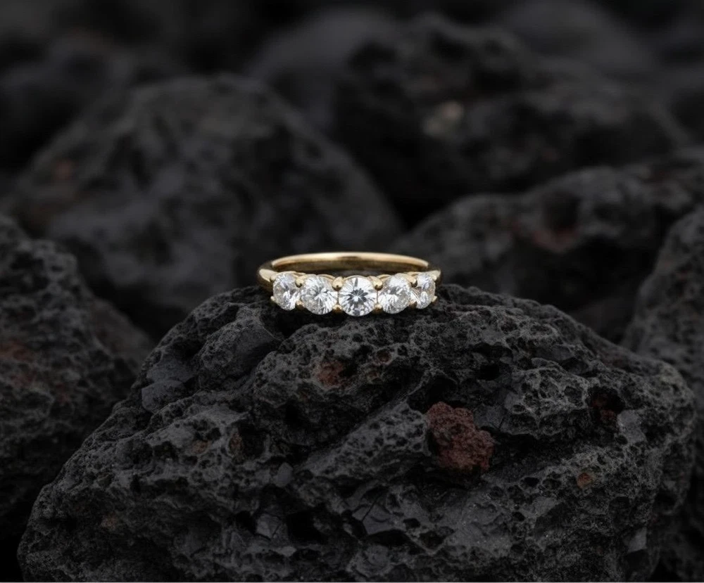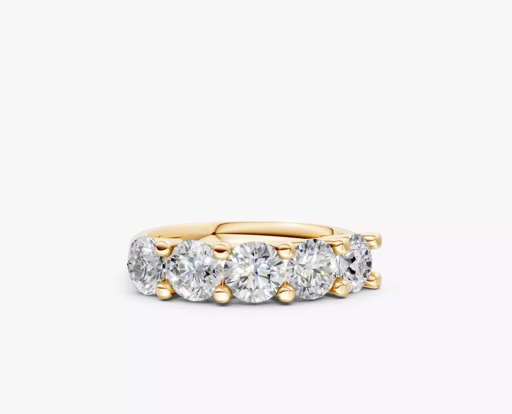14K Solid Gold 5 Lab Grown Diamond Wedding Band 1.65ctw β Made in USA, Custom Made π 5 REAL Lab Grown CVD Diamonds β Round brilliant cut, 4.40mm each π Total Carat Weight β 1.65ctw of stunning sparkle π Gold Options β White, Yellow, or Rose in 14K solid gold π§΅ Made to Order β Crafted just for you with care π¦ Gift-Ready β Comes in a beautiful presentation box πΊπΈ Made in USA β Ships from California with tracking β³ Production Time β Please allow 1 week to 10 days π Ring Sizes β Available from 3 to 9, including quarter sizes βοΈ Personalization β Enter ring size and gold color at checkout π¬ Custom Requests Welcome β Contact us for any modifications Celebrate your love with timeless brilliance. This handcrafted 14K solid gold wedding band features five lab grown diamonds, each 4.40mm in size, totaling 1.65 carats. Ethically sourced and expertly cut in a round brilliant style, these diamonds boast F color and VS2 clarity for exceptional sparkle. Available in white, yellow, or rose gold, this ring is made to order in sizes 3 to 9 (including quarter sizes). Each piece ships from California in a beautiful gift boxβperfect for weddings, anniversaries, or special milestones. Please allow 1 week to 10 days for production. Be sure to enter your desired ring size and gold color in the personalization box when placing your order. Contact us for any custom requestsβweβre happy to help! Item Sku No: F1101