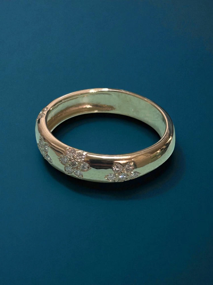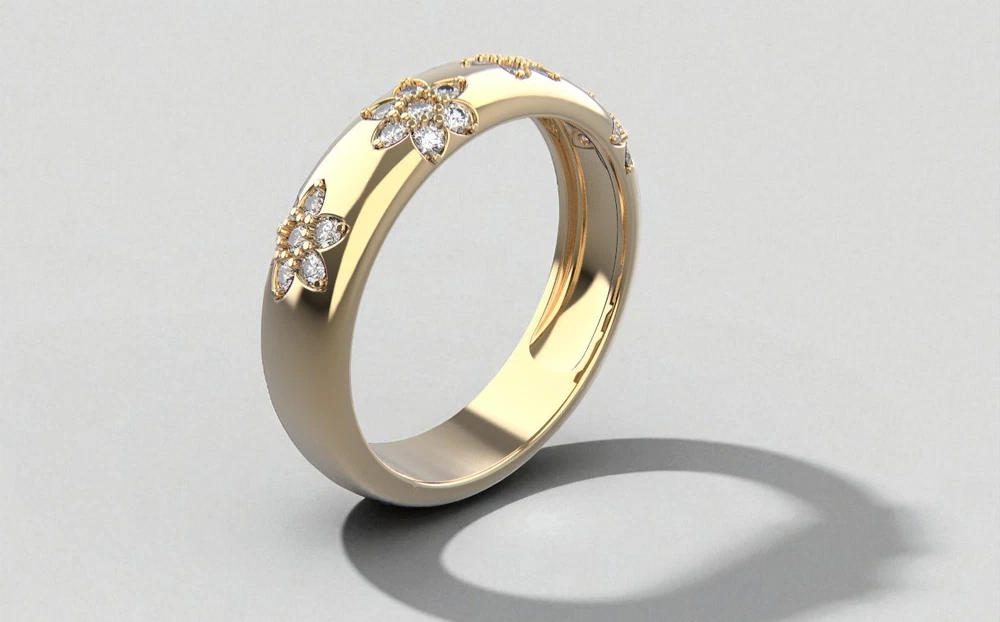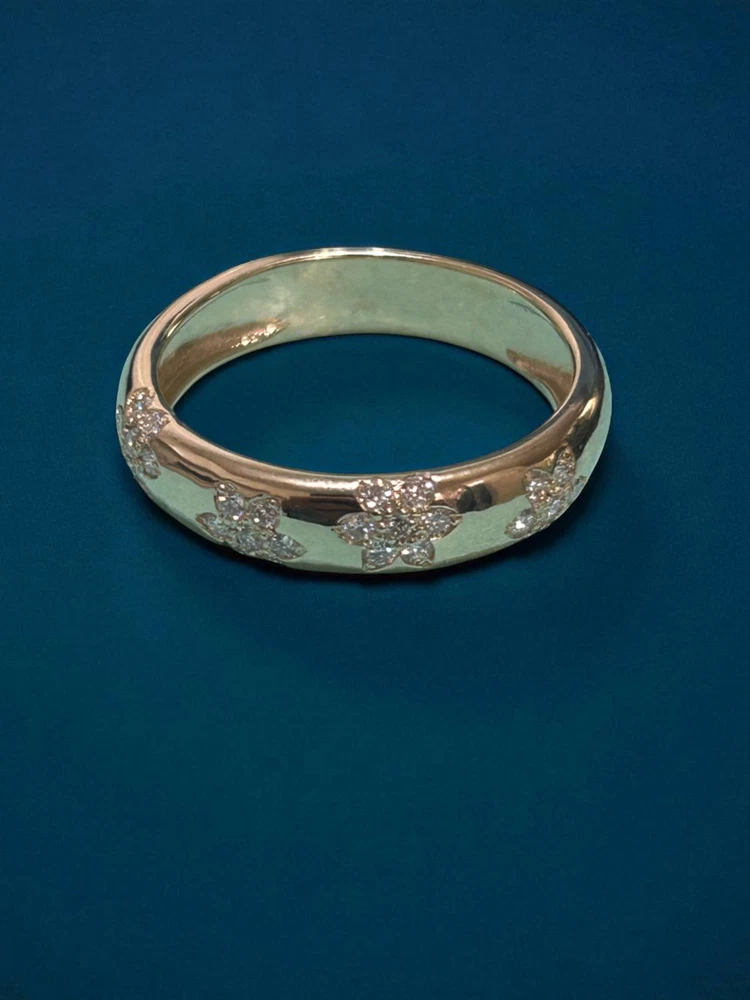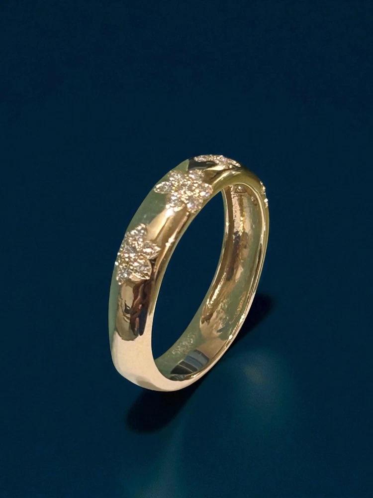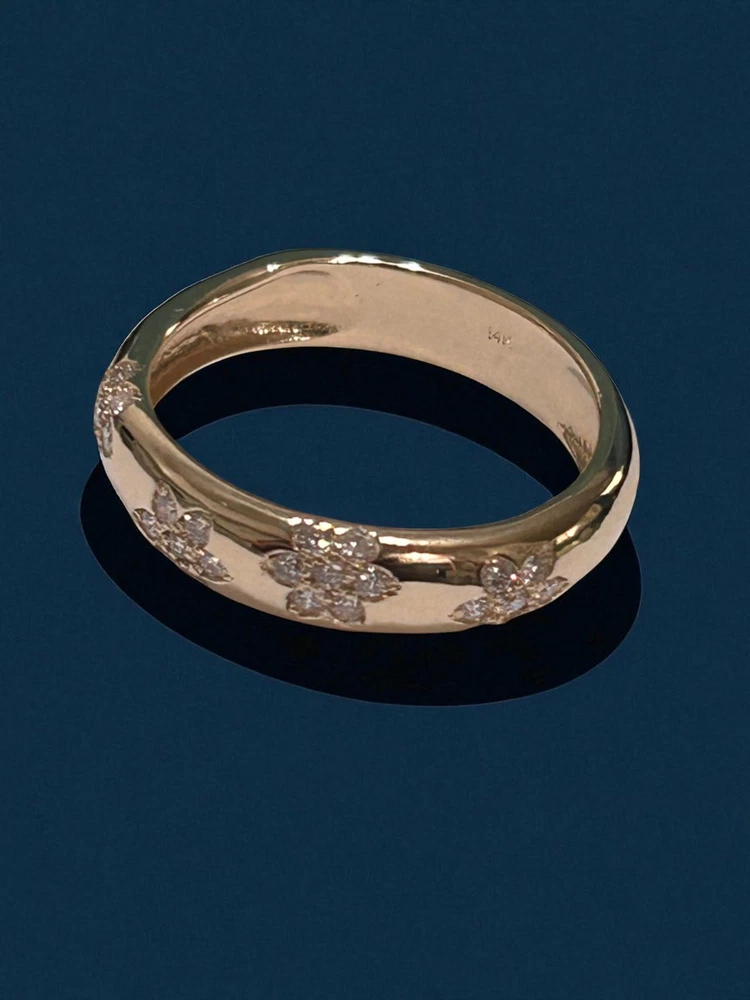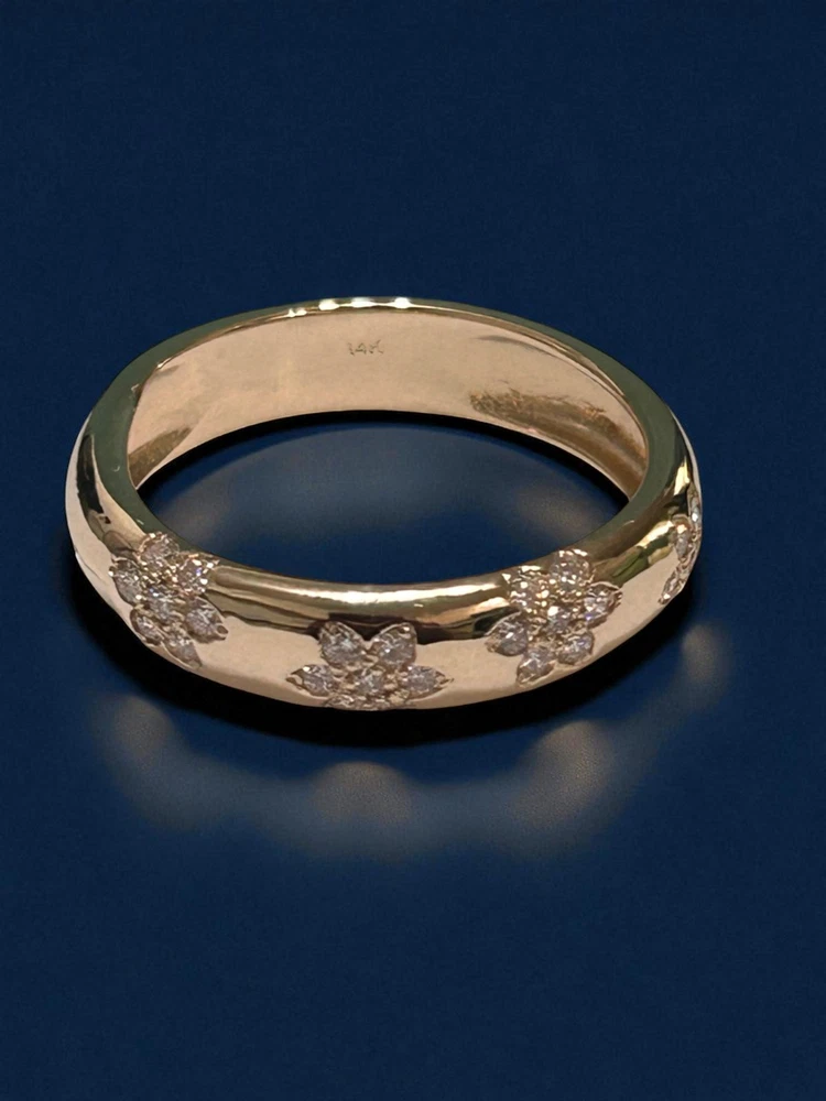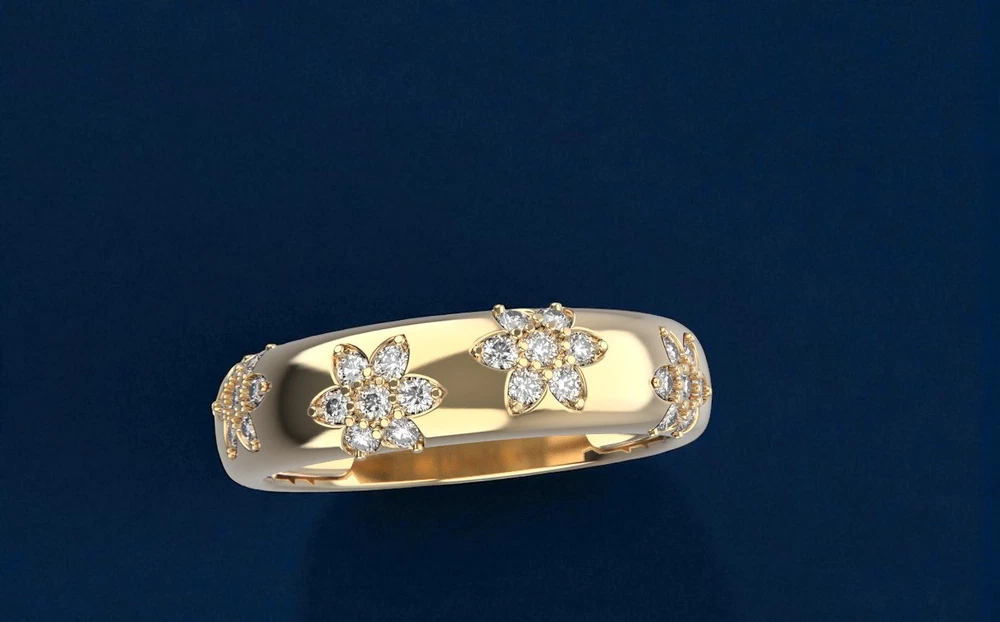 eBay Ecommerce Description 14K Solid Gold Flower Design Diamond Wedding Band Floral Wedding Band for Her Product Description TIMELESS ELEGANCE & SYMBOL OF LOVE: Celebrate your love with this 14K Solid Gold 5mm Flower Design Diamond Wedding Ring, a timeless symbol of commitment and devotion. Designed as a half eternity band, this stunning ring features 28 brilliant-cut lab-created diamonds, offering exceptional sparkle and beauty. Each diamond is G color with VS2 clarity, ensuring a radiant and near-flawless appearance. The 3mm band width provides a delicate yet durable design, making it perfect for daily wear or special occasions. Whether used as a wedding band, promise ring, or anniversary gift, this elegant ring is a cherished token of love. PERFECT FOR STACKING & VERSATILE WEAR: The thin and sleek design of this diamond ring makes it ideal for stacking with other rings, including engagement rings or eternity bands, to create a unique and personalized style. The 14K solid gold band is crafted for durability, ensuring it remains a lasting symbol of your relationship. Whether you choose to wear it alone for a minimalist look or pair it with other rings for a sophisticated ensemble, this diamond wedding band effortlessly complements any jewelry collection. Available in yellow, white, and rose gold, this ring can be customized to match your personal style. A THOUGHTFUL & CHERISHED GIFT: This diamond half-eternity band is more than just jewelry it's a meaningful gift for your loved one. Whether given for an engagement, anniversary, birthday, or special milestone, it represents eternal love, commitment, and elegance. Its high-quality craftsmanship and stunning brilliance make it a treasured piece for any recipient. Each ring comes in a luxurious gift box, making it ready for gifting on any occasion. With its classic yet modern appeal, this 14K gold diamond ring is a piece to be cherished for a lifetime. Specifications Band Width: 5.0mm Total Carat Weight: 0.35 Ct Ring Style: Flower Design Diamond Wedding Band Design: Wedding Band Stacking Diamond Ring Diamond Count: 28 Brilliant-Cut Diamonds (1.40mm Each Diamond) Diamond Color & Clarity: F Color, VVS2 Clarity Customization: Available in Different Gold Colors Wearability: Ideal for Weddings, Stacking, or Daily Wear Symbolism: Represents Love, Commitment & Timeless Beauty Metal: 14K Solid Gold (Available in Yellow, White & Rose Gold) 👉 Order now and experience the beauty of this elegant 14K gold diamond ring. If you have any questions or need customization, feel free to contact us! SKU: Z2230