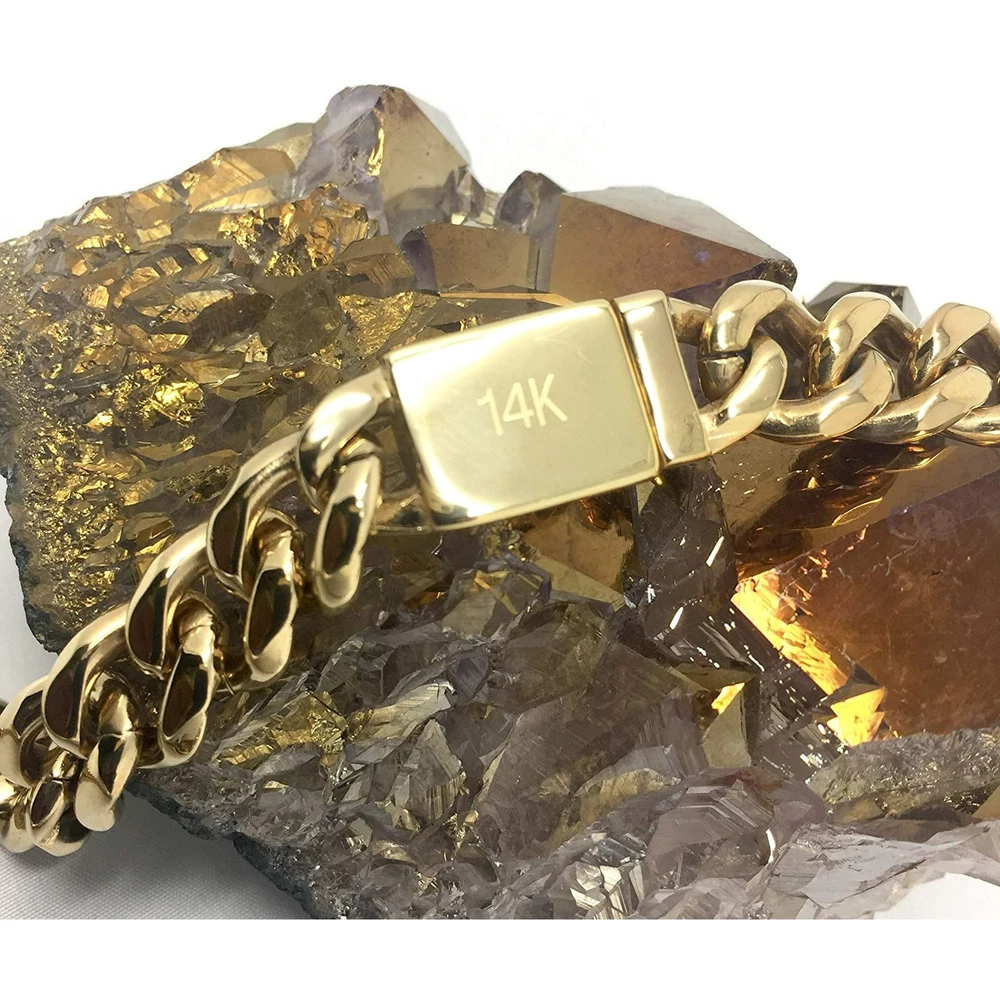 🌟MODERN CLASSIC - Add style to a basic look with this solid 14K gold 11MM Curb chain. Our diamond-cut beveled links are much more reflective than the standard curb chain for a rich, perfect shine. It is strong and durable for daily wear yet not too thick for a comfortable fit. Wear alone with casual or formal attire for everyday modern elegance, with a favorite pendant for a personal statement or as a great layering chain. Visit our store for a full selection of chains. 🌟PERFECT GIFT FOR HIM OR HER - Elegant unisex necklace for those who appreciate beautiful and unique Italian jewelry. This timeless essential is the perfect gift idea for husband, wife, son, daughter, mom, dad, brother, sister, boyfriend, girlfriend, best friend or for you. Give someone special luxurious fine jewelry to rock from day to night with style. 🌟GIFT BOX INCLUDED - Our jewelry is shipped in an elegant gift box, ready to treat yourself or a loved one for any anniversary, Birthday, Christmas, Father’s Day, Mother's Day, Valentine’s Day, Wedding, Graduation, and any other holiday or special occasion gifting. From cool modern to classic vintage, offers high-quality affordable sterling silver jewelry for men and women, comfortable for everyday wear and for all occasions. EACH CHAIN IS HAND MADE AND THE LINKS ARE WELDED TOGETHER, THIS IS A ONE OF A KIND NECKLACE YOU WILL FIND ON THE MARKET FOR THIS PRICE, We only use 14k GOLD (THE PUREST form of gold which has a distinctive shiny pure gold ) instead of 10k! No cheap metals copper (turns green) or nickel which can irritate your Skin, Chains have been tested and they are NICKLE, LEAD, and ALLERGY FREE so your skin is safe with our chains OUR TRADE SECRET IS SEMI-PRECIOUS alloy of the best bonding metals ensures the LOOK OF SOLID GOLD and LONG LIFE of the item. WE USE LATEST PVD PROCESSING TECHNOLOGY to provide a good gold color and a wear-resistant surface. Message us if interested in different sizes. 100% UNCONDITIONAL FREE LIMITED LIFETIME GUARANTEE AND REPLACEMENT FOR ALL BINTU JEWELRY ITEMS! Due to the fact that each piece is carefully hand-made, sizes may vary just slightly.