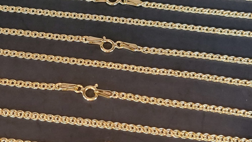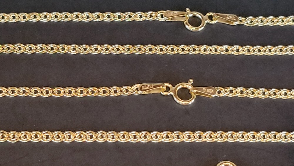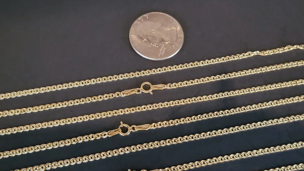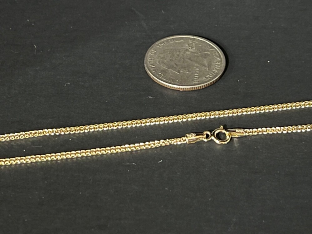 14K Solid Yellow Real Gold 1.8 mm; 2.40mm Nonna Chain Necklace 16”, 18”, 20”, 22”, 24”. Pure 14k Gold. Not Plated or filled. Made in Turkey by one of the highest Manufacturer, known as the premier Jewelry Manufacturer in the USA, Turkey and Worldwide. Metal Type - Yellow Gold. Metal Purity - 14k Gold Stamped for Authenticity - Midas 14 k, Turkey. Lock Type - Spring Ring Clasp. Length: 16”, 18”, 20”, 22”, 24”. Width: 1.80mm; 2.40mm. Some pictures were enlarged for more details. Average Weight for 1.80mm: 16”- 1.05 grams; 18” - 1.15 grams; 20” - 1.25 grams; 22” - 1.35 grams; 24” -1.45 grams. Disclaimer: Please allow +/- 0.05 grams weight may difference. Average Weight for 2.40mm: 16" - 1.05 grams; 18" - 1.15 grams; 20" - 1.25 grams; 22" - 1.35 grams; 24" - 1.45 grams. Please allow +/- 0.05 grams weight may difference. Free Gift box included. All domestic orders come with free shipping. We accept returns within 30 days. 100 % money back Guarantee. Immediate payment required. About us: We have an established business since 1990. We have been importing fine gold jewelry from Italian, Turkish, USA factories directly. And successfully selling our beautiful pieces in our retail Jewelry Store and distributors. We are offering the public chance to buy our high quality necklaces at bargain price. We are sure our necklaces will meet your expectations. We appreciate feedbacks from our customers. Thank you.