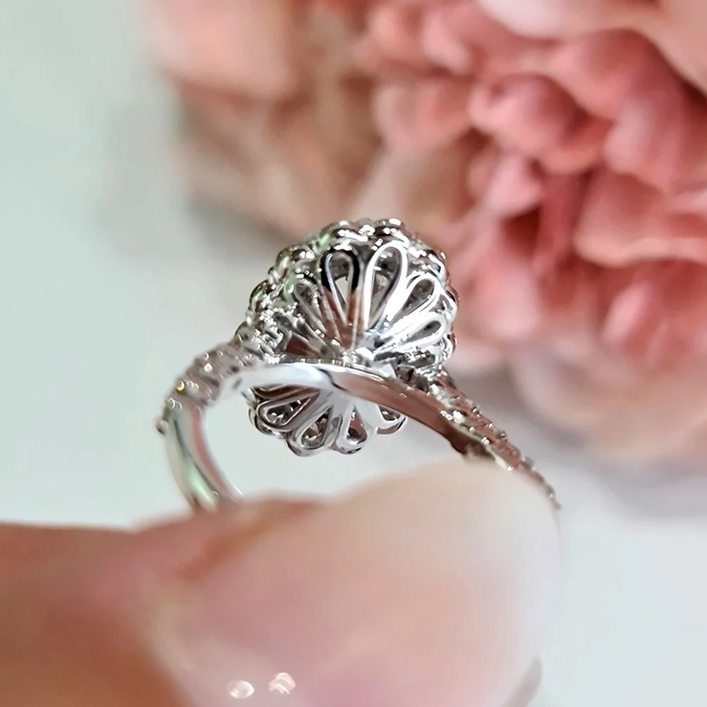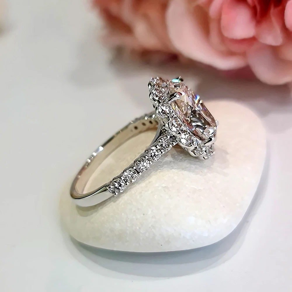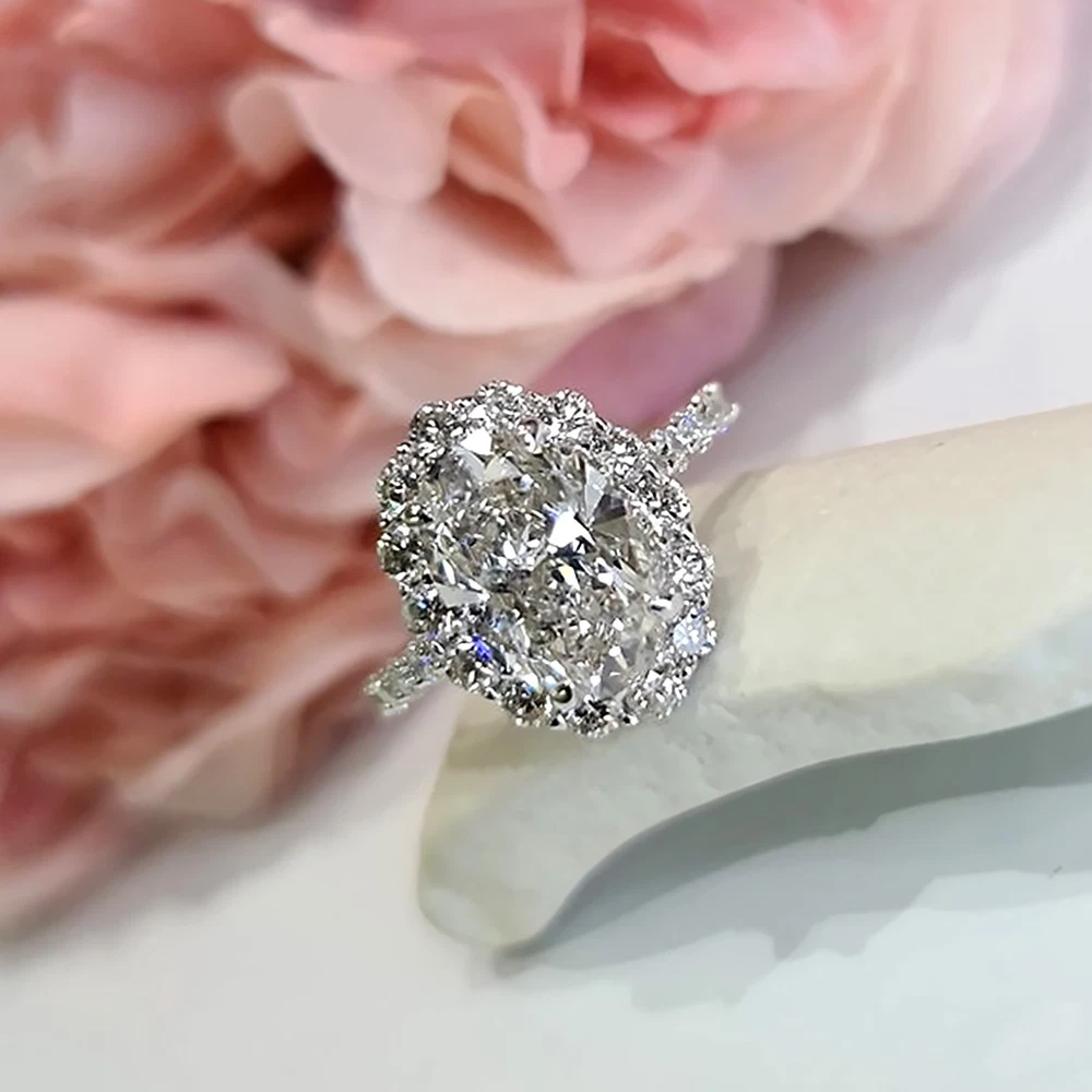 18K White Gold Diamond Ring CVD Lab Created Oval 4.38 Ct IGI Certified E F VVS2