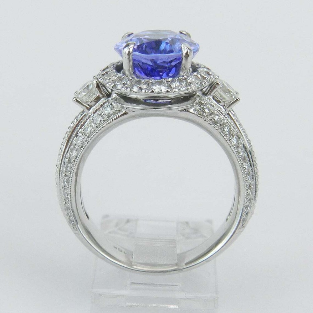 14K White Gold Finish 3.50Ct Oval Cut Blue Tanzanite Women Halo Engagement Ring