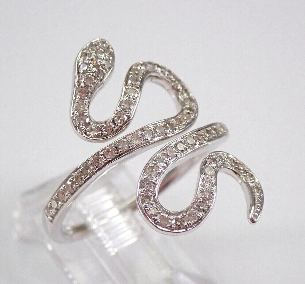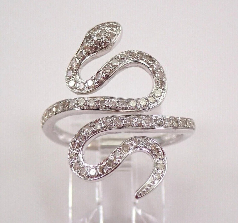 14K White Gold Plated 2Ct Lab Created Round SNAKE Ring Wraparound Serpent Design