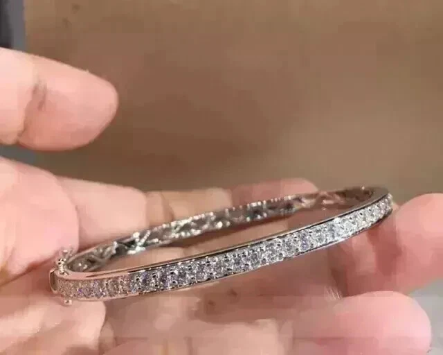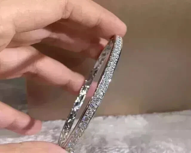 Chain Type: As per image Brand: Jewelryforyou-7 Cut Grade: Excellent Secondary Stone: Diamond Style: Bangle Base Metal: Silver Handmade: Yes Seller Notes: “?***$$$Valentine-day Big Sale Offer *$$?” Material: Gemstone, Stone Wholesale: Yes Number of Gemstones: N/A Gemstone Clarity Grade: Eye Clean Diamond Color Grade: D Country of Origin: United States Vintage: No Closure: As per image Signed: No Main Stone Creation: Lab-Created Theme: Beauty Occasion: Wedding Type: Bracelet Main Stone Color: White Colored Diamond Intensity: Fancy Shape: Round Item Length: 7 in Main Stone Treatment: Not Enhanced Metal Purity: 925 Personalize: Yes Main Stone: Diamond Setting Style: Prong Metal: Sterling Silver Antique: No Sizable: Yes Main Stone Shape: Round Number of Diamonds: As per Image Total Carat Weight: 5.00 Carat (Approx.) Color: White Collection: N/A Diamond Clarity Grade: Very, Very Slightly Included (VVS1) Charm Type: Traditional Country/Region of Manufacture: United States Certification: N/A Features: Engraved, Nickel-Free