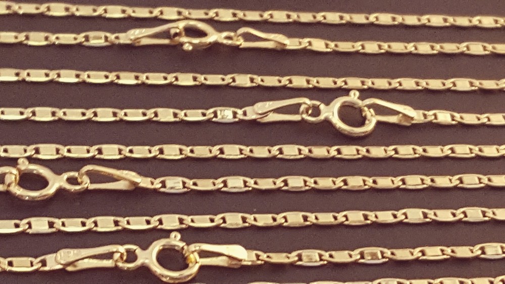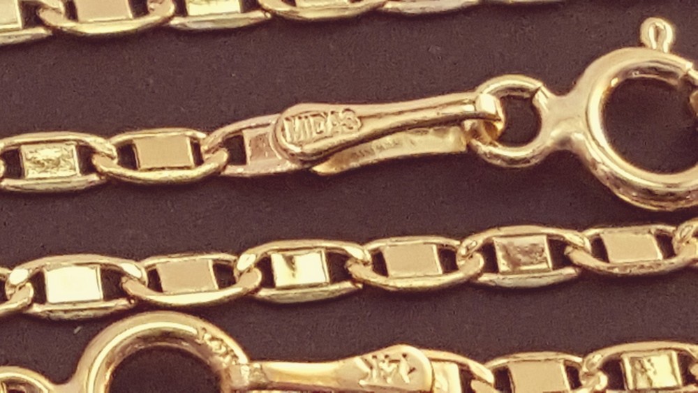 14 k Yellow Gold 1.8 mm Valentino Chain Necklace 22". Not Plated or filled. Made in Turkey By Midas. It’s One of the Highest Manufacturer, known as the Premier Jewelry Manufacturer in the USA, Turkey and Worldwide. Metal Type - Yellow Gold. Metal Purity - 14k. Stamped for Authenticity - 14 k Midas. Lock Type - Spring Ring Clasp; Length: 22"; Average Weight: 1.69 gram Disclaimer: Please allow +/- 0.05 gram Weight may difference; Width - 1.8 mm. Some pictures are may be enlarged for more details. Free Gift box included. All domestic orders come with free shipping. We accept returns within 30 days. 100 % money back Guarantee. Immediate payment required. ired. About us: We have an established business since 1990. We have been importing fine gold jewelry from Italian, Turkish, USA factories directly. And successfully selling our beautiful pieces in our retail store and distributors. We are offering the public chance to buy our high quality necklaces at bargain price. We hope our necklaces will meet your expectations. We appreciate feedbacks from our customers. Thanks.