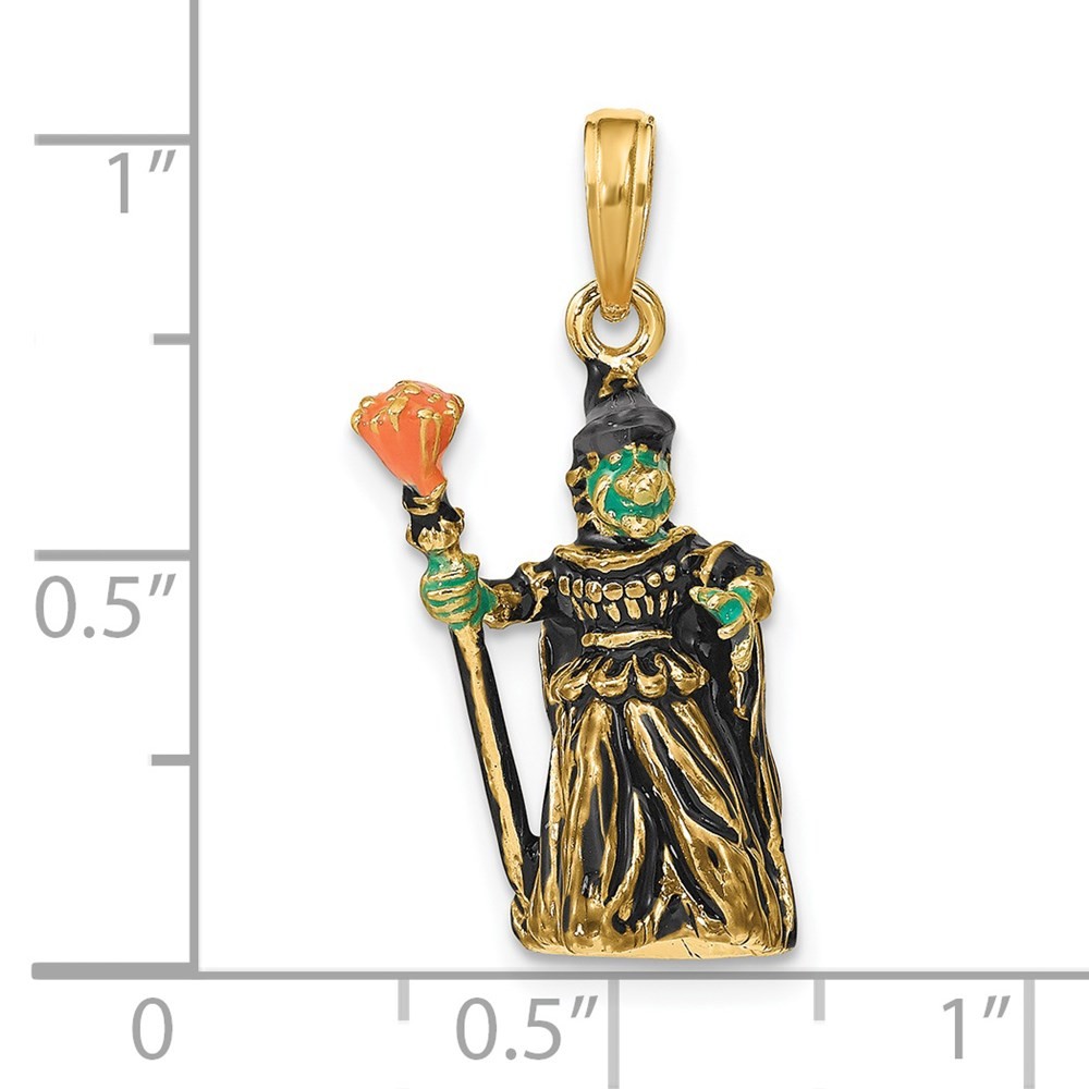 14K Yellow Gold 3-D Enameled Witch Flying on Broom Charm Pendant L-25.7 mm
