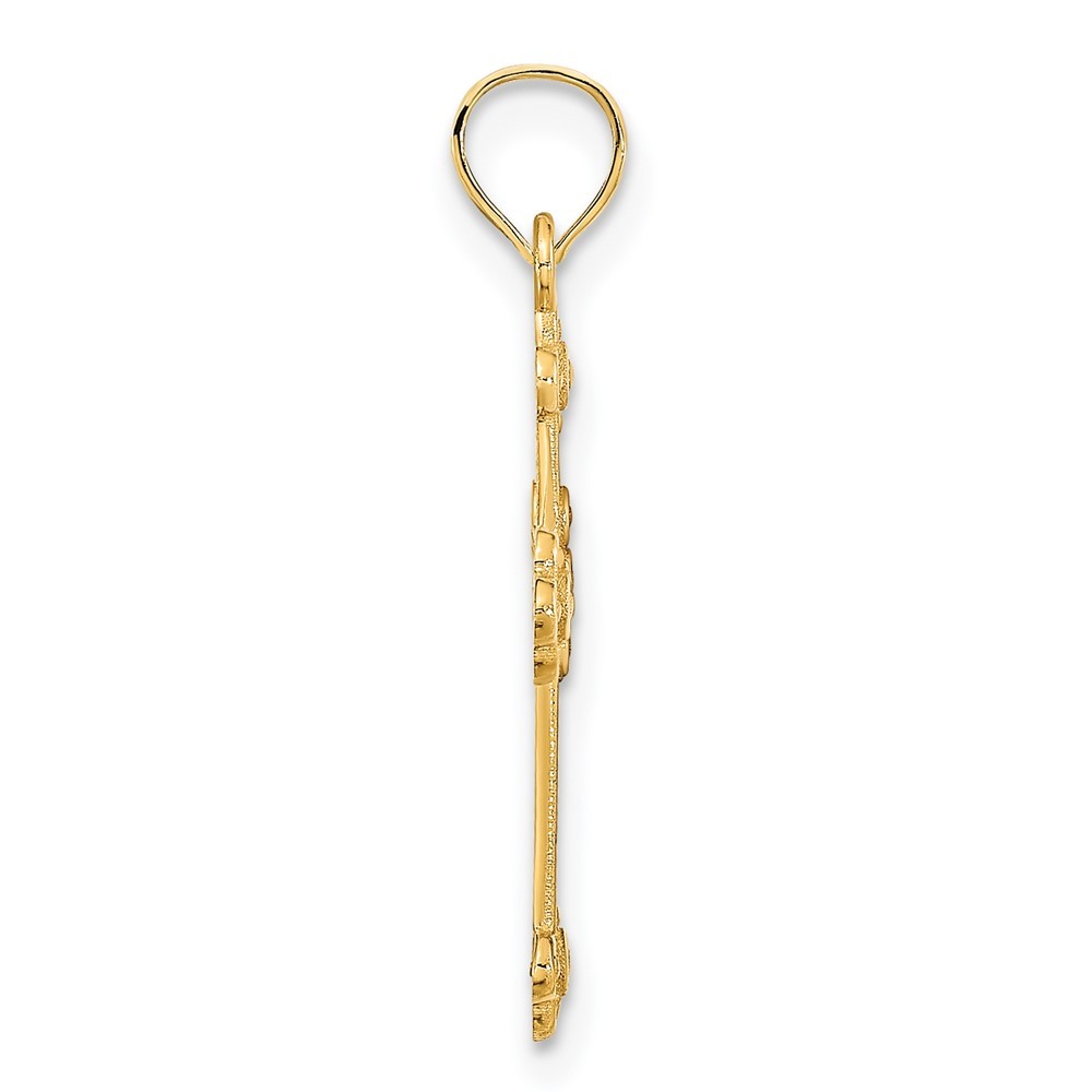 Material: Primary - Purity:14K|Finish:Polished|Length of Item:26.2 mm|Charm/Element Length:21 mm|Charm/Element Thickness:0.8 mm|Charm/Element Width:14.75 mm|Feature:Solid|Material: Primary:Gold|Width of Item:14.75 mm|Product Type:Jewelry|Jewelry Type:Pendants & Charms|Sold By Unit:Each|Pendant/Charm Type:Themed|Gender:Unisex|Texture:Textured|Profile Type:Flat Back|Material: Primary - Color:Yellow|Bail Length:5 mm|Feature 2:Lightweight All weights and measurements are approximate and may vary slightly from the listed information. Welcome to diamond_6720 Payments We accept all Ebay approved payment. Please sent the payment to us within 8 days after the auction has ended, or you will have unpaid case auto open by eBay. Shipping Policy We will ship all items within 1 business days of purchase during the work week (M-F) excluding holidays. If you order on Friday, your order will be shipped the following business day. Tracking will be provided when it becomes available. We will only ship to a PayPal Verified Address. Please make sure your address is current and correct. If the information does not match, your order may be canceled. Buyers are responsible for all customs, duties and taxes for your respective countries. Delivery times for International Shipping will vary. California Buyers Pay 9.0% Tax on all orders. case auto open by eBay. Return Policy & Exchange Returns or Exchange are accepted. Buyer must contact us within 30 days after the item is received. Item must be returned in unworn and resalable condition. We will only issue a refund for the purchase price, excluding any shipping fees. If we are at fault, we will provide a full refund. Buyer is responsible for all return shipping costs. BUYERS FEEDBACK If you have any concerns regarding your purchase, please contact us via eBay Message, we assure you that a satisfactory resolution will be reached. Your feedback is very important to us Do remember to give us 5 star rating(*****) if you are satisfied with our product & service .