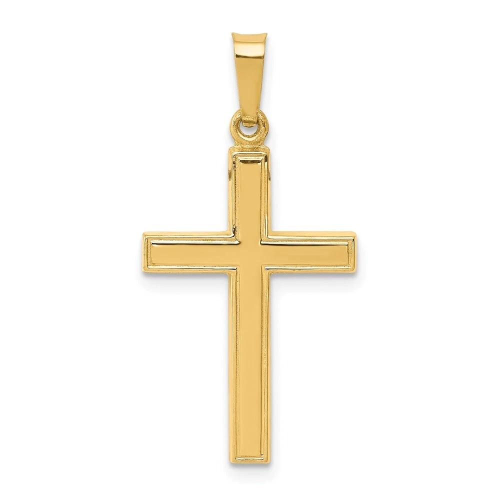 14K Yellow Gold Hollow Cross Pendant L- 1.11 Inch, W-0.36 Inch, 0.65 gram