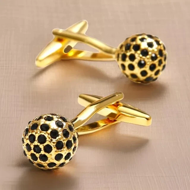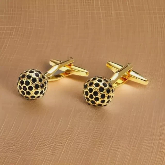 14K Yellow Gold Plated Cufflinks For Men 1.10Ct Lab Created Round Black Diamond