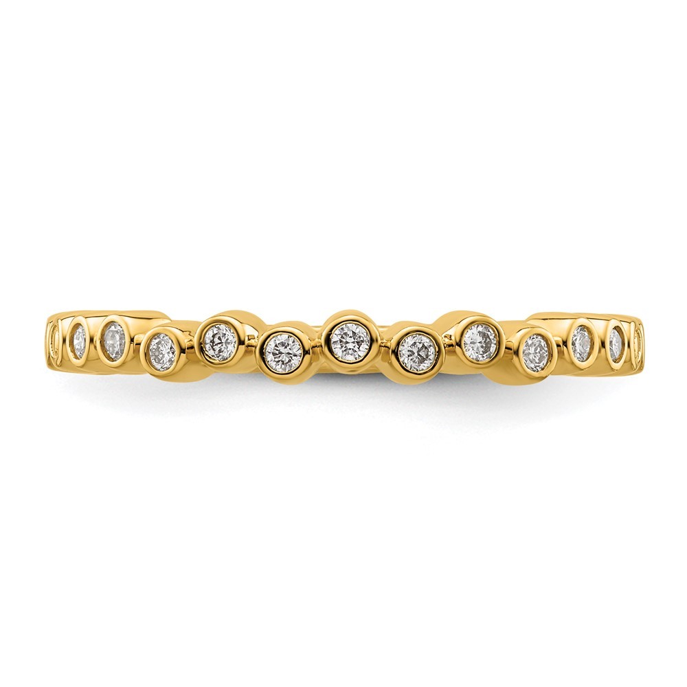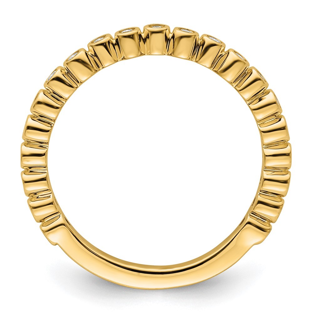 Material: Primary - Purity:14K|Finish:Polished|Stone Type_1:Diamond|Stone Quantity_1:11|Band Width:2.6 mm|Stone Setting_1:Bezel Set|Feature:Solid|Material: Primary:Gold|Sizeable:No|Stone Shape_1:Round|Stone Size_1:1.3 mm|Item Weight U/M:gm|Product Type:Jewelry|Jewelry Type:Rings|Sold By Unit:Each|Material: Primary - Color:Yellow|Ring Type:Stackable|Feature 2:Closed Back|Stone Creation Method_1:Natural All weights and measurements are approximate and may vary slightly from the listed information. Welcome to diamond_6720 Payments We accept all Ebay approved payment. Please sent the payment to us within 8 days after the auction has ended, or you will have unpaid case auto open by eBay. Shipping Policy We will ship all items within 1 business days of purchase during the work week (M-F) excluding holidays. If you order on Friday, your order will be shipped the following business day. Tracking will be provided when it becomes available. We will only ship to a PayPal Verified Address. Please make sure your address is current and correct. If the information does not match, your order may be canceled. Buyers are responsible for all customs, duties and taxes for your respective countries. Delivery times for International Shipping will vary. California Buyers Pay 9.0% Tax on all orders. case auto open by eBay. Return Policy & Exchange Returns or Exchange are accepted. Buyer must contact us within 30 days after the item is received. Item must be returned in unworn and resalable condition. We will only issue a refund for the purchase price, excluding any shipping fees. If we are at fault, we will provide a full refund. Buyer is responsible for all return shipping costs. BUYERS FEEDBACK If you have any concerns regarding your purchase, please contact us via eBay Message, we assure you that a satisfactory resolution will be reached. Your feedback is very important to us Do remember to give us 5 star rating(*****) if you are satisfied with our product & service .