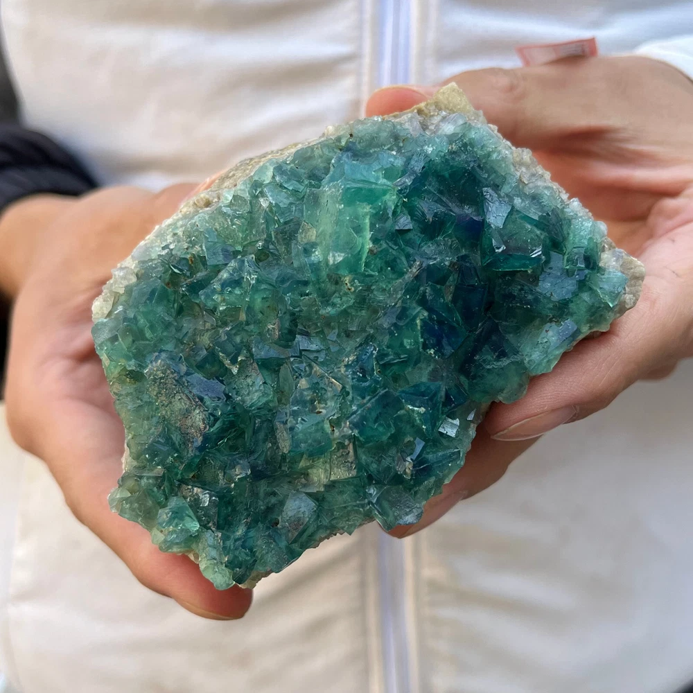 $ 168.964.1LB Natural Green Fluorite Cube Quartz Crystal Cluster Mineral Specimen