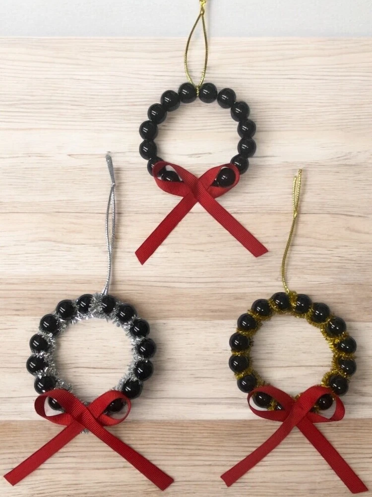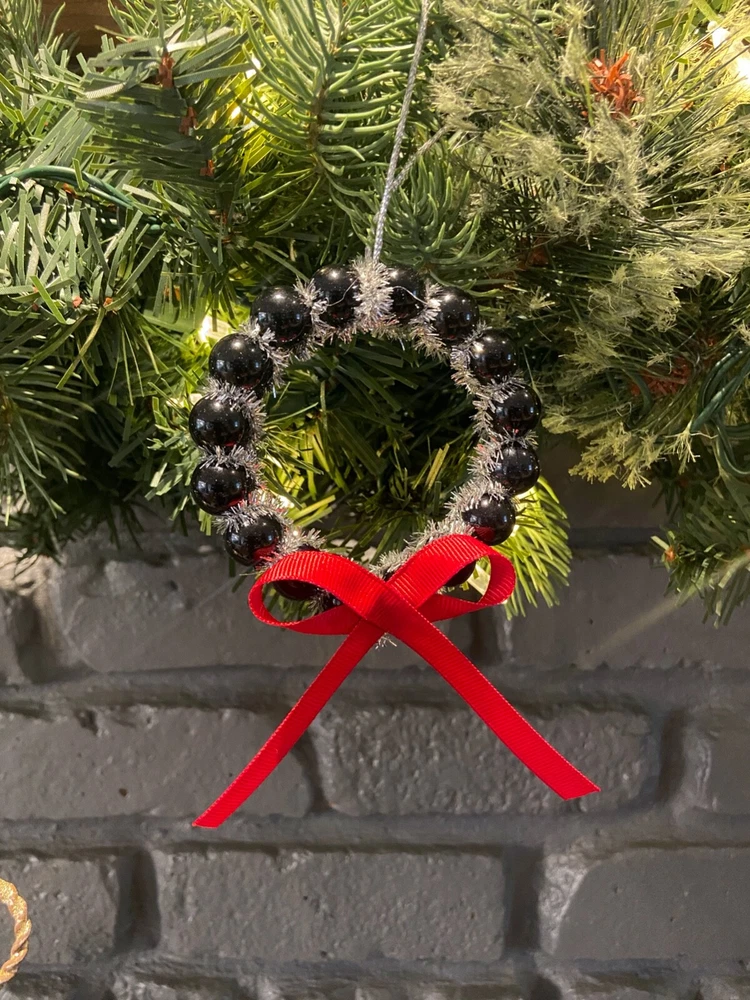 D R E A M P A R T Y C R E A T I O N S Thank you for visiting us: 14MM Pearls MINI Wreath Tree Ornament Choose Design & Package Amount Mini Wreath Ornament Measures 3-1/4" in Diameter. Choose from 3 designs. Each designed with a 3/8" Grosgrain Bow. Add a touch of elegance to your holiday décor with this beautiful 14MM gold pearls mini wreath tree ornament. Choose from a variety of designs and package amounts to create the perfect addition to your home Holiday Decor. Made from quality acrylic Pearls, this ornament is sure to last for years to come. Whether you're looking for a unique gift or simply want to add some festive flair to your own space, this mini wreath tree ornament is the perfect choice.
