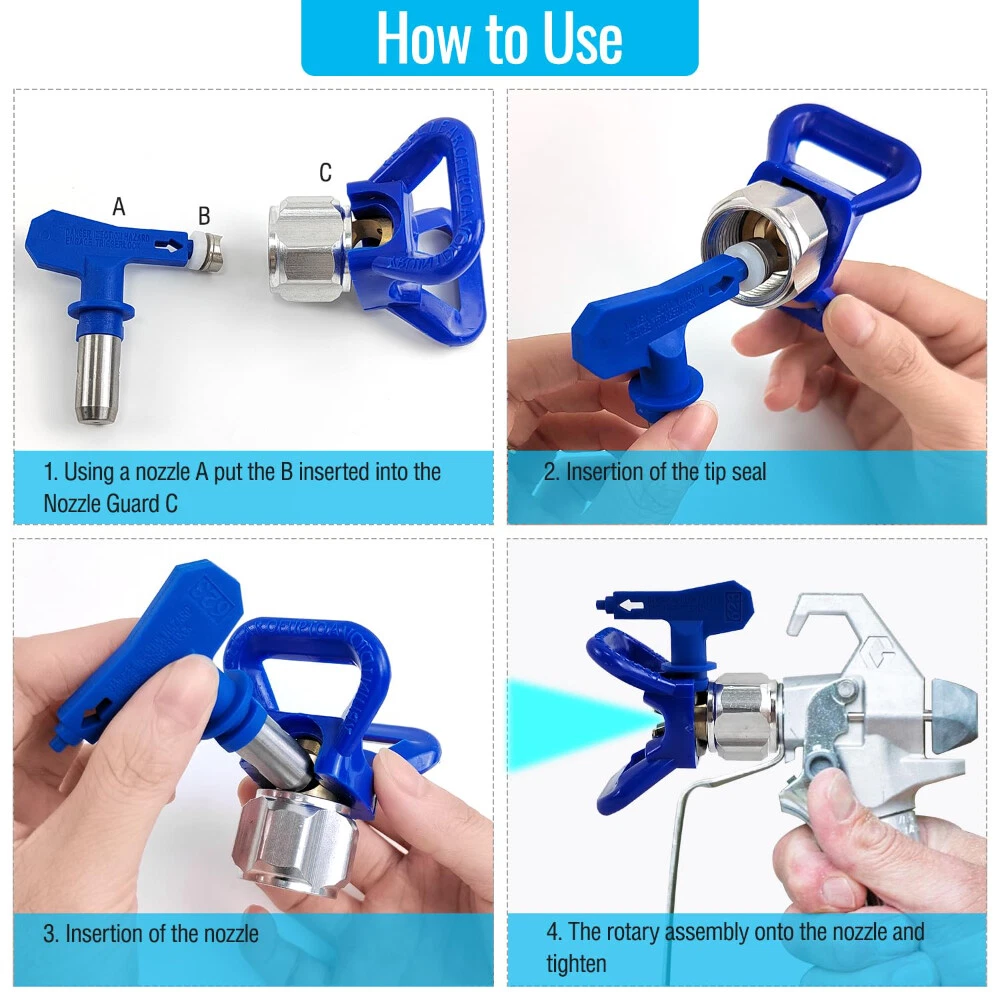 Product Description Welcome to our store! 14Pcs Reversible Spray Paint Nozzle Tips, Airless Paint Sprayer Guns, with Spray Gun Filters and Protective Seat, Spray Paint Machine Parts, for House, Car, Hull Painting (211, 315, 417, 515, 517, 623 Practical: Our reversible spray paint nozzle set can be sprayed stably, the coating is uniform and delicate, which can effectively reduce the loss. It is a must-have painting accessory for painters and decorators. Model: Our airless paint sprayer has 6 models: 211, 315, 417, 515, 517, 623. The spraying angle is 20° - 60°, the range of spray width of paint sprayer gun can be seen in the 5th picture. Material: Our airless paint spray gun tip set is made of high -hardness tungsten steel. It is strong and durable, not easy to wear, and has a long service life. High precision, spray stable. Easy to use and clean: Upgrade airless paint spray nozzle can be installed quickly in a short time without using tools. After use, you only need to rotate the nozzle to clean it, which is convenient and fast. Applicable scenario: We provide you with 6 spray paint nozzles, 2 protective seats, and 6 filters. It can be used for house renovation, hull painting, car painting and other scenarios to meet your daily painting needs. Installation steps (refer to the 7th picture) Step 1: Insert the nozzle seal into the protective base. Step 2: Insert the nozzle into the protective base and rotate it to secure it. Step 3: Attach the protective base to the air spray gun and it is ready for use. Note: After use, the nozzle can be rotated for cleaning. Payment Policy Shipping Policy Returns Policy