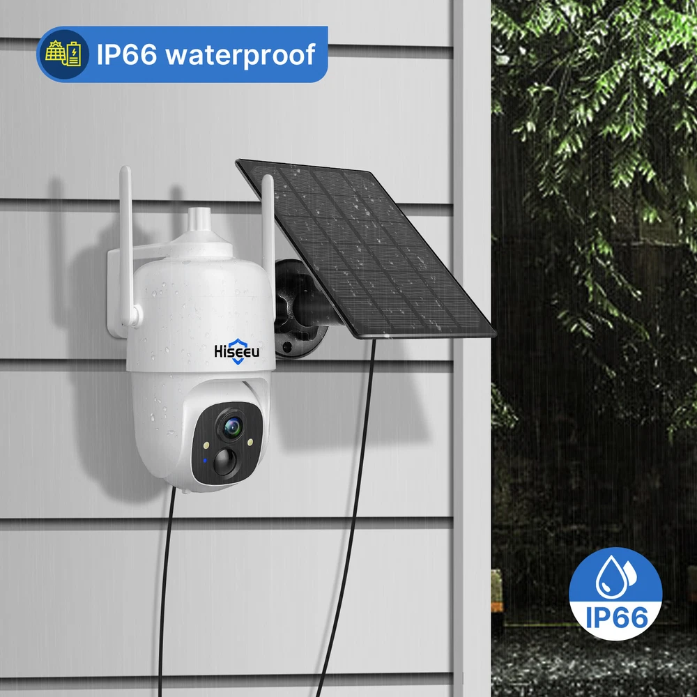 【High Tolerance COMS & Spotlights】 Hiseeu solar outdoor camera, equipped with high tolerance COMS and PIR sensor, can provide 1296P ultra-high-definition images and videos regardless of the weather condition. 4 infrared lights automatically sense the ambient light, and switch to night vision mode when the light becomes weak, therefore objects within 65 feet at night can be seen clearly. 【PIR Motion Detection & Real-time Alert】 Using the upgraded Al algorithm and PIR sensor, the wireless security camera enhances human-like recognition to reduce false alarms. The camera sends you real-time alerts when it detects movement. After receiving the alert, you can speak to the person in front of the camera in real-time through the APP. This solar security camera is not only a monitor for your home, Warming tips1:Getting camera in the first time,please charge 17 hours via USB. Warming tips 2:This camera have PIR function ,when detect the human or animal , it can be record,otherwise ,it will into sleep to save battery energy. About this item : 【 High Tolerance COMS & Spotlights 】 Hiseeu solar outdoor camera, equipped with high tolerance COMS and PIR sensor, can provide 1296P ultra-high-definition images and videos regardless of the weather condition. 4 infrared lights automatically sense the ambient light, and switch to night vision mode when the light becomes weak, therefore objects within 65 feet at night can be seen clearly. 【 PIR Motion Detection & Real-time Alert 】 Using the upgraded Al algorithm and PIR sensor, the wireless security camera enhances human-like recognition to reduce false alarms. The camera sends you real-time alerts when it detects movement. After receiving the alert, you can speak to the person in front of the camera in real-time through the APP. This solar security camera is not only a monitor for your home, it can also be used to scare off intruders or thieves. 【 Remote Viewing On The Other Side Of The Earth 】Hiseeu has powerful global Internet services.After you connect Hiseeu CQ1 Wi-Fi camera to the internet, even if you travel on the other side of the earth,you can get real-time images of your home and hear family through the "Vicohome" App.Download free App "Vicohome" from Google Play or Apple App Store. 【 100% Wire-Free and Solar Powered 】 Hiseeu CQ1 runs on 2.4 GHz WiFi and stays fully-charged with Hiseeu solar panel which realize 100% wire-free security. With high-capacity battery, long-lasting power per charge and no worry about weather. 【 Setup in Minutes 】Just 4 steps. 1) Install Vicohome App from Google play or Apple App Store. 2) Register a Vicohome account with your email or mobile number and sign in. 3) Select the "add camera now" button on the app, then enter your WiFi name and password, and then a QR code will appear. 4) Press power button on the camera for 3 seconds, scan the QR code on your phone with the camera. 3MP image quality The high-performance 1/2.9'' CMOS sensor, resolution of 3MP HD, together with a wide-angle lens, provides fine imaging and captures every detail for you. Spotlight & Two way audio Dual light source camera is a trend. You can use it as a human body detection porch lamp. Light the way for you who return late. The camera has built-in microphone and speaker. After you set up the app, you can also use it as an ultra remote walkie talkie. Talk to the person in front of the camera. And you can see his movements. Amazing! PIR Human Detection Compared with the traditional type of motion detection based on inter frame comparison, the camera with PIR infrared sensor has been greatly improved in reducing false alarm. The principle of PIR infrared sensor is to detect the infrared light emitted by the high body temperature of mammals. This activates the camera, and then the camera enters the motion detection mode. Solar and Batteries Powered CQ1 adopts the best monocrystalline silicon solar panel made in China, reaching the highest photoelectric conversion efficiency of 24% in the industry. Combined with the 18650 battery with Panasonic battery cell, the service life of the battery can be up to seven years or even longer. It has more stable power output and provides 365 day power for the camera. Due to the transportation time, I suggest you use the power adapter to fully charge the camera before installation. Pan Tilt 360° View Solar PTZ camera is a popular product at present. Compared with the traditional fixed angle camera, you can control it to move up and down horizontally on your mobile phone. I believe you have the scene of using it in your mind now. IP65 Waterproof As a necessary ability of an outdoor camera, in IP65 Waterproof Rating, first digit 6 means that the device is fully dustproof and no solid object can go inside and damage it while the second digit 5 means device can resist low-pressure water from any angle. IP65 Rating Test Method Any device which is tested for waterproof and assigned IP65 Rating passes through this test. As such device is claimed to resist low-pressure water, so for test purposes, water is thrown over it at the rate of 12.5 liters per minute at a pressure of 30 kPa from a distance of 3 meters. If a device passes this test, the second digit is given value “5”. For solid particles, it is tested separately and if no dust enters the device, it is given maximum value of “6” to the first digit. Vicohome App An App connects everything. Vicohome has a wealth of intelligent product lines. In the field of security cameras, there are battery cameras and DC powered battery cameras to meet your needs for indoor and outdoor security. In addition to the camera, there are smart LED lights and smart sockets. You can control them through an app called vicohome. Package Details 1x WIFI Solar Camera 1x Solar Panel 1x Bracket 1x Screws Bags 1x USB Cable 1x User Manual