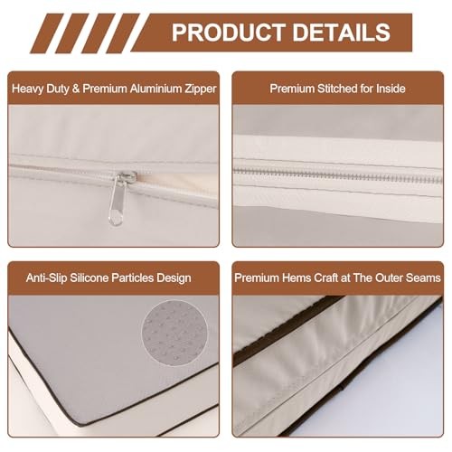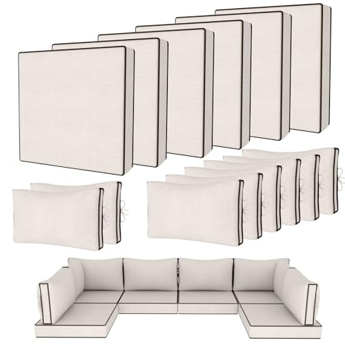 Size: 25.6"L x 25.6"W x 4"H -14 covers Package Dimensions: 15.71 x 13.07 x 6.42 inches Date First Available: January 14, 2025 MPN: Does Not Apply Item Width: 13.07 Type: Does Not Apply Item Length: 15.71 Item Height: 6.42 UPC: Does Not Apply Item Weight: 9.55 pounds Closure Type: Zipper, Ties Country of Origin: China Special Feature: Fade Resistant, Weather Resistant, UV Resistant EAN: Does Not Apply Pattern: Solid Recommended Uses For Product: Wicker Rattan Patio Furniture Color: Cream+black Piping gtin13: Does Not Apply Manufacturer: Does Not Apply Item model number: Outdoor Patio Cushion Covers Shape: Rectangular Style: Modern Product Care Instructions: Hand Wash Only Material: Polyester Fabric Type: 80%polyester Customer Reviews: 4.4 out of 5 stars Number of Items: 1 Unit Count: 1.0 Count Brand: Does Not Apply