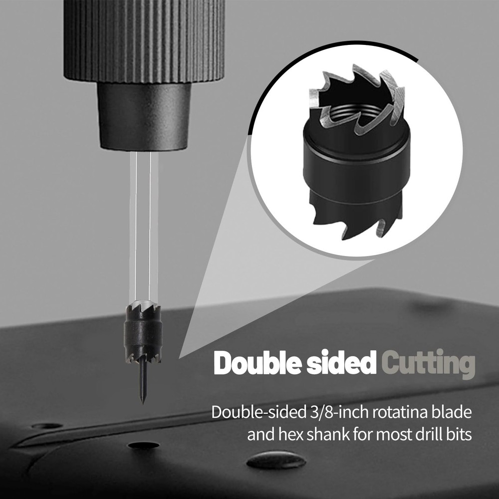 ◆【Spot welding knife】 The spot welding cutting machine is a double-sided rotary cutting machine blade, which separates the spot welding panel more effectively than the panel cutting machine. Use high temperature lubricants (not included) to maximize the life of the blade. High temperature lubricants are the best way to extend the life of the blade. When you start passivation, spot welding, and quickly cut clean, burr-free round holes, you only need to replace the blade. The spot welding knife can avoid this risk, it can be separated quickly, the blade is sharper, and the piercing ability is better. ◆【Application】Ideal for removing spot welded panels or sheet metal without distorting the metal or damaging the panel below,Wide range use: iron, cast iron, alloy steel, carbon steel, die steel,die grinder, fix vehicle,drill holes,auto body renovations,etc. ◆【Specifications】:Color: Black, Material: High Speed Steel,Cutting Blade Diameter: 3/8",Arbor Size: standard 1/4",Provides precision cutting action cuts around spot welds. Fit for: Spot weld cutter with double sided rotary blade, made of high-quality heat-resistant and thick steel. The perfect tool can remove the spot-welded panel or metal plate without distorting the metal or damaging the panel below, thereby reducing skid welding and The need to break the weld. efficient. Suitable for thin stainless steel plate, iron plate, aluminum plate, F.R.P or other thin metal plates Material: The preferred material is made of high-quality steel with excellent heat resistance, high hardness and wear resistance. The drill center pin is spring type.The diameter of the cutting blade is 3/8 inch, and the shank is a standard 1/4 inch size.with a flat shank to eliminate rotation in the chuck Easy Separation: The spot welding cutting machine drill bit can easily separate the spot welding plate without distorting the metal plate. Separate spot welding of sheet metal, panels, etc., and cut out small inspection holes. Also known as: spot weld drill bit, spot weld bit, spot weld cutter drill bit, spot weld drill cutter, spotweld drill bits, spot weld cutter, Rotary Spot Weld Cutter Sets Double Sided, Power Drill Spot Welding Package Include: 1 x Drill with Cutter,2 x Pilot Pin,11 x Extra 3/8" cutters. Also known as: Remover Drill Bits Hex Sheet Metal Hole Cutter Remover, Punch Remover Panel Separator, Spot Weld Cutter Set, 3/8" Rotary Spot Weld Cutter Remover Drill Bits Tool, Metal Hole Cutter Remover Providing high Quality and Professional Parts with Great Service: if you have any questions, please feel free to contact us by email for more information!We will solve it for you in the first time