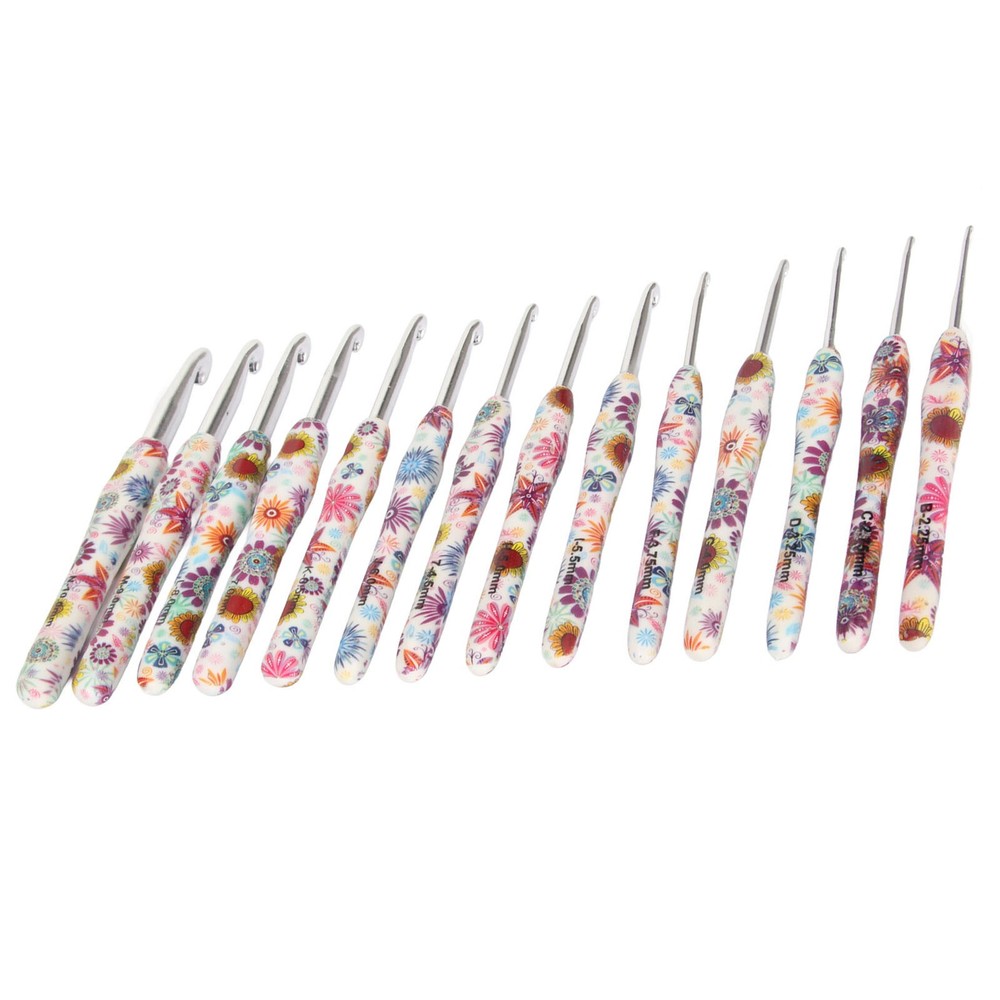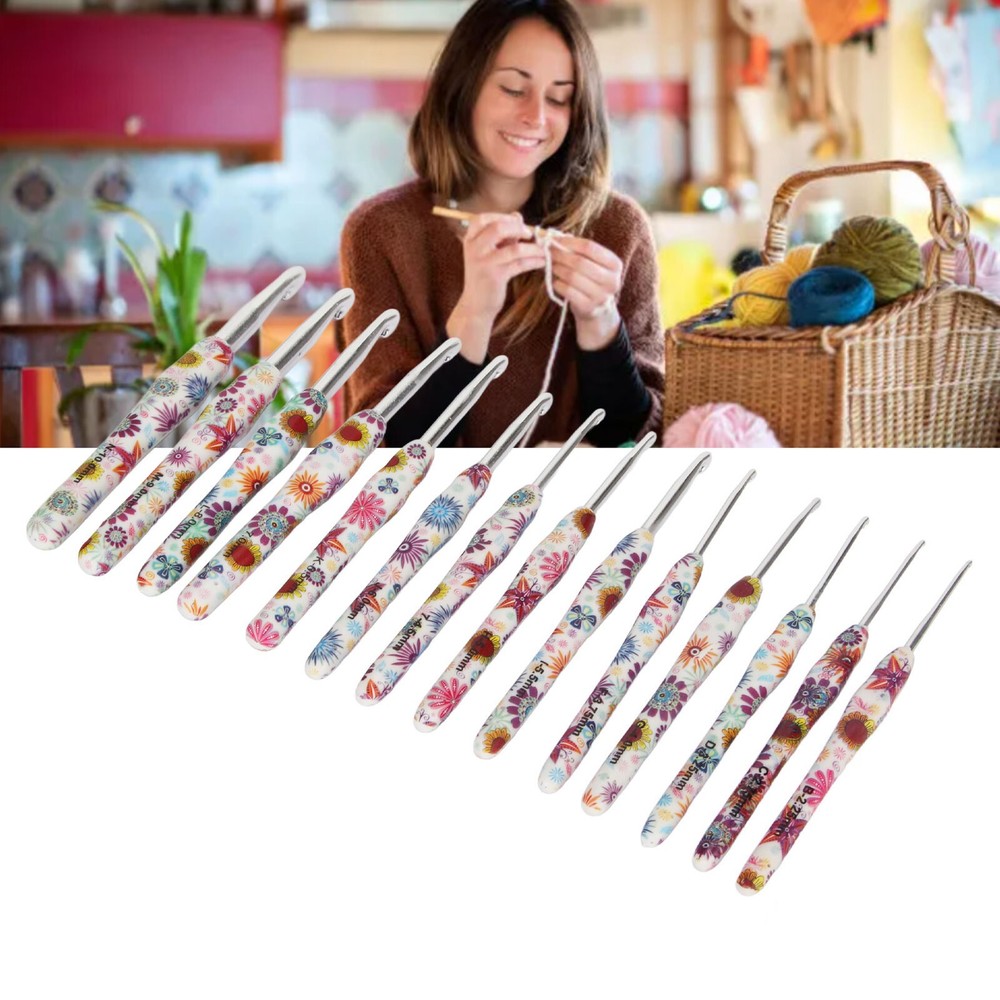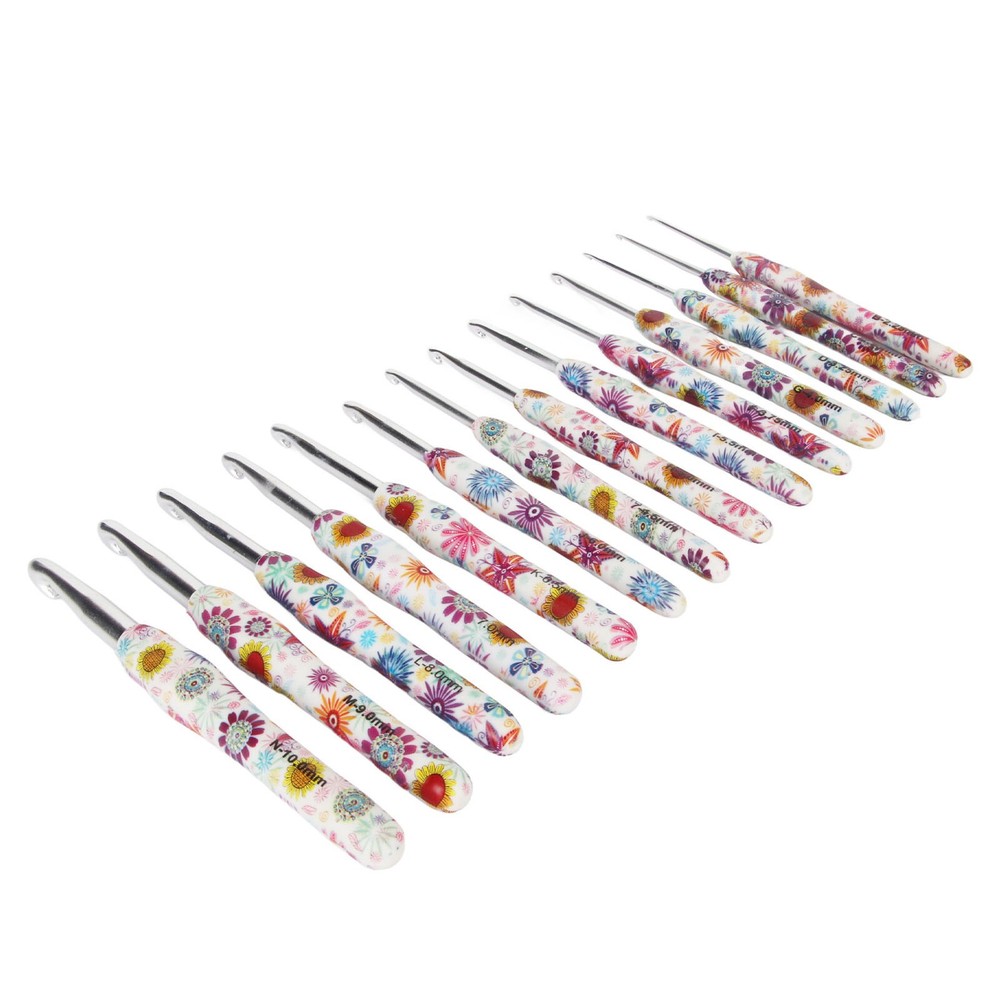 Feature: 1. ERGONOMIC DESIGN: Crochet hooks are ergonomically designed with comfortable handles that are easy to grip and reduce or eliminate hand wrist or finger pain, perfect for arthritic hands. 2. 14 SIZES: Crochet hooks are available in a variety of sizes to meet your different needs for making blankets, hats, scarves, fabrics, shoes, toys, small crafts and more. 3. SUNFLOWER PRINTING: Knitting needle with sunflower printing appearance, beautiful and exquisite, each needle has a number on the shank for easy identification. 4. EASY KNITTING: Crochet hooks are made of aluminum and are smoothly to the touch, so you don't have to worry about yarn getting stuck, making it easy to knit. 5. PERFECT GIFT: For beginners and crochet lovers, crochet gift is the perfect gift that can easily fit into your backpack, suitcase, suitcase. Specification: Item Type: Crochet Hooks Set Material: Aluminum Product Specification: 14pcs Model: Approx. 2.25mm / 0.09in, 2.75mm / 0.11in, 3.25mm / 0.13in, 3.75mm / 0.15in, 4mm / 0.16in, 4.5mm / 0.18in, 5mm / 0.2in, 5.5mm / 0.22in, 6mm / 0.24in, 6.5 mm / 0.26in, 7mm / 0.28in, 8mm / 0.31in, 9mm / 0.35in, 10mm / 0.39in Product Use: Suitable for Weaving Anywhere. Package List: 14 x Crochet Hooks