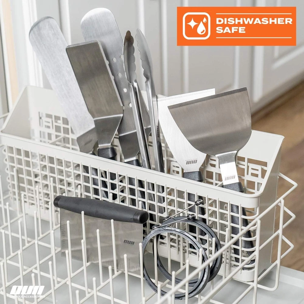 Material Type: Stainless Steel Number in Pack: 14 Number Of Pieces: 14 Head Material: Stainless Steel Set Includes: Griddle Set, Long Spatula (14.5"), Slotted Spatula (14.5"), Beveled Spatula (11.7"), Chopper (6"), Griddle Scraper (9.5"), Burger Flipper (10.8"), Pair of 12" Locking Tongs, 4x Silicone Egg Rings, 2x Squeeze Bottles (16oz), Carry Bag Personalize: No Color: Multicolor Style: Modern Is The Item Dishwasher Safe?: Yes Item Dimensions L X W X H: 14.8 X 5.32 X 6 Inches Finish: Polished Item Weight: Not Specified Size: Medium Type: BBQ Tool Set Item Dimensions: 14.8 X 5.32 X 6 Inches UPC: Does Not Apply Handle Material: Polypropylene (PP) Item Height: 6 Inches Features: Dishwasher Safe, Heat-Resistant Handles, Non-Stick, Rust Resistant, Heavy Duty Griddle Cleaner, Efficient Cleaning Tools Number of Items in Set: Fourteen-Piece Item Type Name: Barbecuetoolset gtin13: Does Not Apply Material: Stainless Steel Brand: Unbranded
