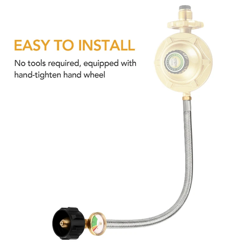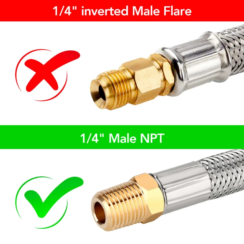 eBay Product Description 2Pcs 15 In Male 1/4" NPT QCC1 RV LP Propane Pigtail Hoses with Gauge Connector Product Description High Quality: Stainless braided hose is made of durable stainless steel braided with good anti corrosion and heat-resistance. Durable solid brass provide secured connections between appliance and tank. Safety: Our 15 inch stainless braided RV propane hoses with gauge can detect dangerous leaks and read fuel level at glance. It can work in dark. No need to install an extra gas gauge. Attention: It's a ACME nut x 1/4 inch inverted male flare.(NOT 1/4'' Male NPT). It can not only connect your 2-stage auto changeover regulator to a QCC1 5lb to 40lb LP gas tank, but also can be used to connect to an installed 4-Port Tee as an auxiliary propane supply. Application: This braided propane hose is suitable for BBQ, RV, outdoor cooking and camping needs. Easy to Install: Installs quickly and easily tool-less attachment to propane tanks and regulator. Length: 15inch hoses Material: stainless steel Connecting thread: Type 1 connection and a 1/4'' inverted Male Flare. Package include: 2 packs stainless braided propane hoses with Gauge. 1 Thread Seal Tape. Gas Type: Propane Payment Shipping Returns Contact Us Feedback We accept payment through Paypal ONLY. All major credit cards are accepted through secure payment processor PayPal. Payment must be received within 7 business days of auction closing. 1. We will ship in 1-2 business days after payment clears. 2. Additional shipping fee will be charged for buyers from Puerto Rico,Hawaii,Alaska,Guam,the U.S. military address of the United States and the nonnative American address please contact our customer service for the details of extra shipping fee. 3. We don't ship to PO.BOX if the package are big, as USPS express don't accept it, so please leave us your valid physical street address. We're confident in the product we sell. But sometimes the item will be damaged during the transit as which rough and tough and out of our control. If your item is defective or damaged when you received it, Pls kindly let us know asap. Take a photos of the damaged items to us,once we confirmed it,we will give you satisfied solution. We can resend or refund once we confirmed. Defective or damaged Shipping charges is for seller. Change mine or dislike Shipping charges is for buyer. Our office hours are MONDAY - FRIDAY 9:00PM - 6:00PM PST. All eBay messages will be responed within 24 housrs, except holidays. We appreciate your business and strived to improve our customer service and our commitment to quality. We greatly appreciate your POSITIVE feedback. If for some reason there is any issue with the purchase, please contact us prior to leaving feedback, and we will be glad to work with you to have it resolved. Payment We accept payment through Paypal ONLY. All major credit cards are accepted through secure payment processor PayPal. Payment must be received within 7 business days of auction closing. Shipping 1. We will ship in 1-2 business days after payment clears. 2. Additional shipping fee will be charged for buyers from Puerto Rico,Hawaii,Alaska,Guam,the U.S. military address of the United States and the nonnative American address please contact our customer service for the details of extra shipping fee. 3. We don't ship to PO.BOX if the package are big, as USPS express don't accept it, so please leave us your valid physical street address. Returns We're confident in the product we sell. But sometimes the item will be damaged during the transit as which rough and tough and out of our control. If your item is defective or damaged when you received it, Pls kindly let us know asap. Take a photos of the damaged items to us,once we confirmed it,we will give you satisfied solution. We can resend or refund once we confirmed. Defective or damaged Shipping charges is for seller. Change mine or dislike Shipping charges is for buyer.