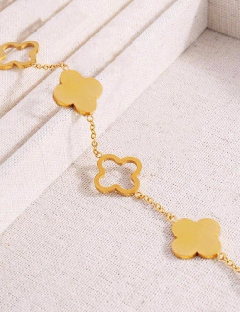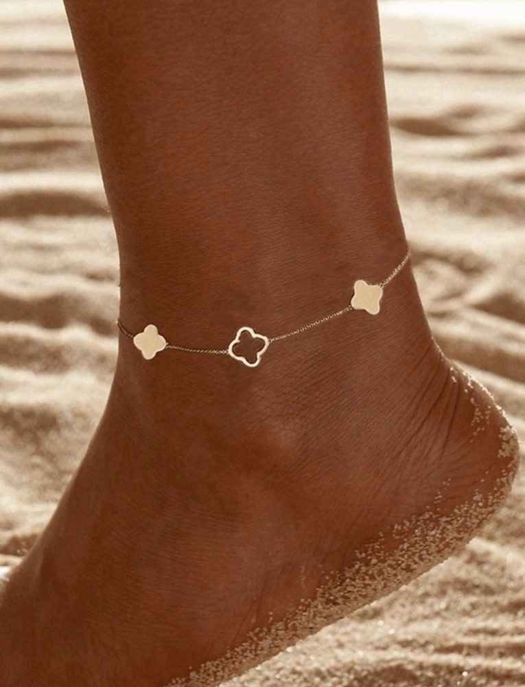 Bring a little luck and a lot of style to your steps with this elegant 14K Gold Plated Lucky Clover Anklet, designed to shine all summer long. Featuring alternating solid and hollow four-leaf clover charms, this dainty anklet symbolizes positivity, good fortune, and timeless feminine charm. Crafted from high-quality stainless steel and plated in rich 14K gold, the anklet is non-tarnish, waterproof, and hypoallergenic, making it perfect for beach days, poolside lounging, or everyday wear. Its minimalist chain and adjustable clasp ensure a secure and comfortable fit for most ankle sizes. Whether you're gifting it for a birthday, summer celebration, or as a stylish self-care treat, this clover anklet adds a touch of elegance and symbolism to any warm-weather outfit.