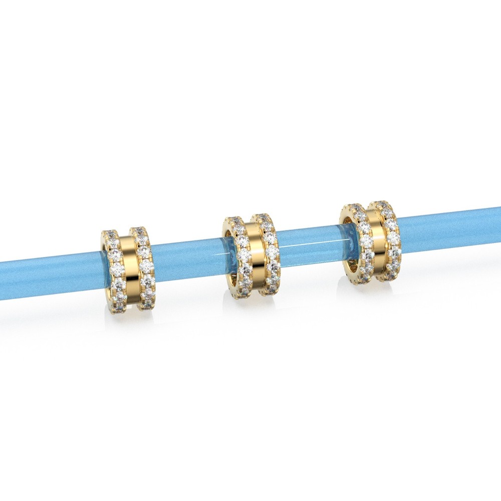 18K solid yellow gold White Diamonds eternity spacers with clean crisp brilliant cut White Diamonds, opulent findings for you high-end gold jewelry! 9mm (Size) x 4.60mm (width) - 5mm Hole Size Diamonds 1.5mm 34 pcs - 0.45cts MATERIAL: 18k Solid Yellow Gold, Genuine Natural Diamonds * Please note that Gold orders are made to order in your choice of Gold KT / Color & Beads drilled to choice so please look at handling time carefully before placing orders. * Please note that Gold orders are made to order in your choice of Gold KT / Color & Beads drilled to choice so please look at handling time carefully before placing orders. * All findings made in Gold come with Real Diamonds / Gemstones and Silver findings come with CZ (Cubic Zirconia) not diamonds. * Photos are taken with macro lens. Please refer to the size mentioned in the description carefully. * Returns & Shipping 1. Everything is handcrafted made-to-order so please look at handling time / delivery date carefully. 2. Order cancellations are not possible after 24 hours of placing order. After 24 hours there will be 20% restocking fee. 3. Returns are acceptable but there will be 20% restocking fee for all orders. Custom orders are subject to 50% restocking fee. 4. All orders placed within USA below $300 are shipped from NY, USA only. Orders above $300 and orders from other countries will be shipped from other country warehouse for faster delivery either Hong Kong or India. 5. Returns are to be shipped at customer's expense only via USPS to our Canadian Warehouse, mark items as Gift and Craft supplies, Value no more than USD $20. Please contact us for return approval and all refunds / replacements will be made after return is delivered and inspected only. 6. In-case you did not find the product upto mark please contact us. We will 100% resolve it and make you happy. You are our priority.