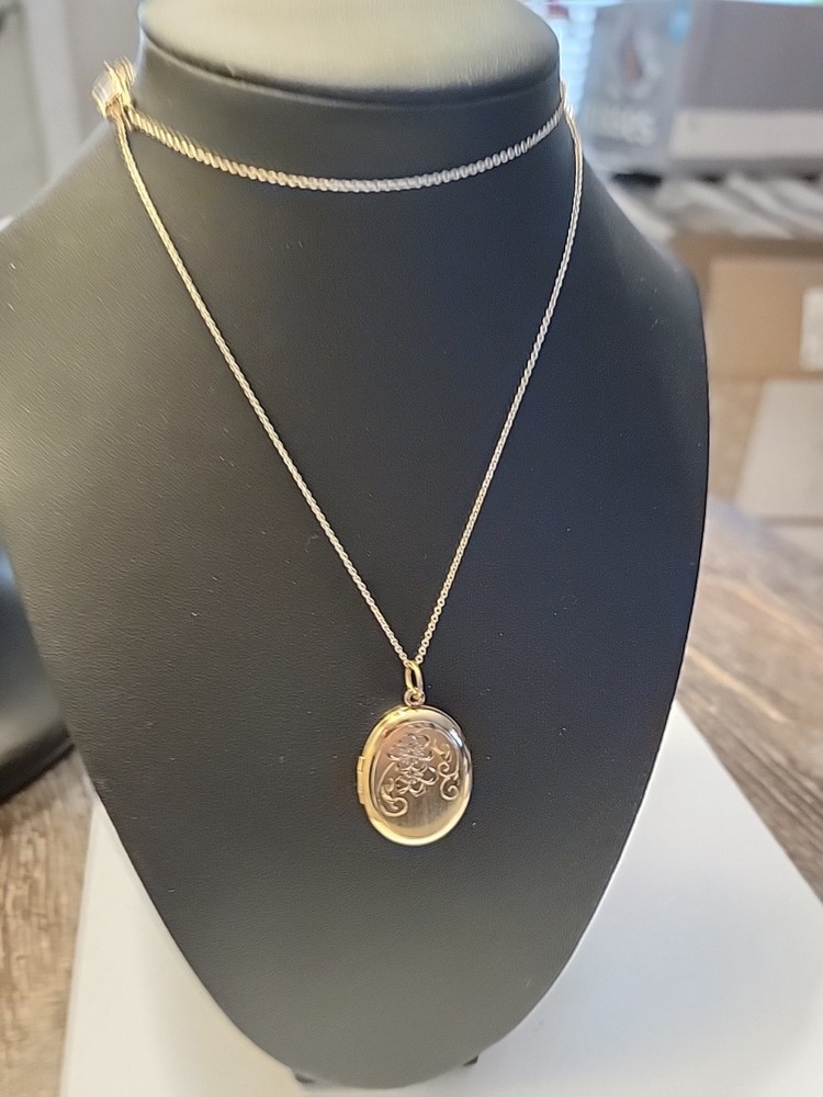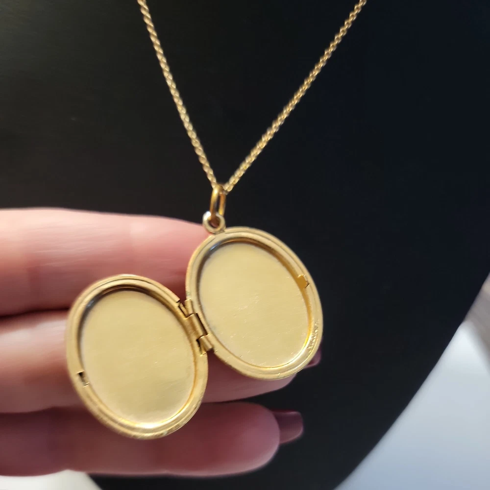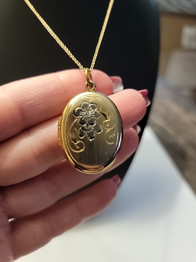 This 14k Gold Filled Oval Etched Flower Locket Pendant is a vintage piece perfect for Mother's Day. The pendant features an oval shape with an engraved flower design, making it a beautiful and unique gift for any woman. Crafted with yellow gold filled metal, this pendant exudes elegance and charm. The locket type allows you to keep a special photo close to your heart, adding a sentimental touch to the piece. Overall, this pendant is a timeless and classic addition to any jewelry collection.