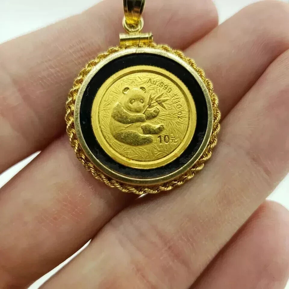 14k Gold Plated Panda Coin Pendant in 925 Sterling Silver
