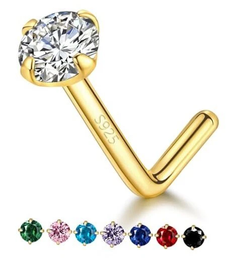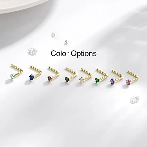 Return Policy Fast Delivery Trusted seller 14k Gold Plated Sterling Silver Small L Shaped Nose Rings Studs for Women Men 20g, 20 Gauge Nostril Nose Piercing Jewelry, Hypoallergenic Gold Nose Stud with Tiny CZ Diamond Product Description ✦ Stunning Shine: Upgrade your style with our elegant gold nose rings studs. Crafted with care, our 20g nose studs feature 2.5mm dazzling cubic zirconia cz diamond, set in sterling silver for a touch of luxury. ✦ Effortless Elegance: Make a statement with our variety of nose ring studs for women. From hypoallergenic options to unique designs, find your perfect piece of nose jewelry and express your individuality. ✦ Stylish Versatility: Discover the perfect nose piercing studs to match your mood. Our 14k gold nose studs collection include: Pink Crystal, Black CZ,Green Emerald, Blue Aquamarine, Purple Amethyst, Red Garnet, Blue Sapphire, cute corkscrew designs for all-day comfort. ✦ On-Trend Accessories: Elevate your nose ring game with our selection of l shaped nose rings for women. Please check our store for chic nose rings hoops, double hoop nose rings or stud nose rings, and experiment with different styles to stand out in any crowd. ✦ AMERICAN OWNED: Based in sunny California, proudly operated by a small business owner from the USA. Shipping Returns Payment Shipping Shipping is FREE to all addresses other than APO/PO boxes in the lower 48 states. All our stock ships from US-based warehouses. Shipped via USPS or UPS (depending on location and package weight) Unless stated otherwise, all orders will ship within 24-72 hours of your payment being processed. Check our feedback to see the great reviews of FAST shipping we offer. Returns Seller does not accept returns Payment We currently accept payment via eBay managed payments only. Once payment is cleared, we will dispatch your shipment within 1-3 business days. Please refer to the "Shipping" tab for more information regarding shipping speed to your destination.