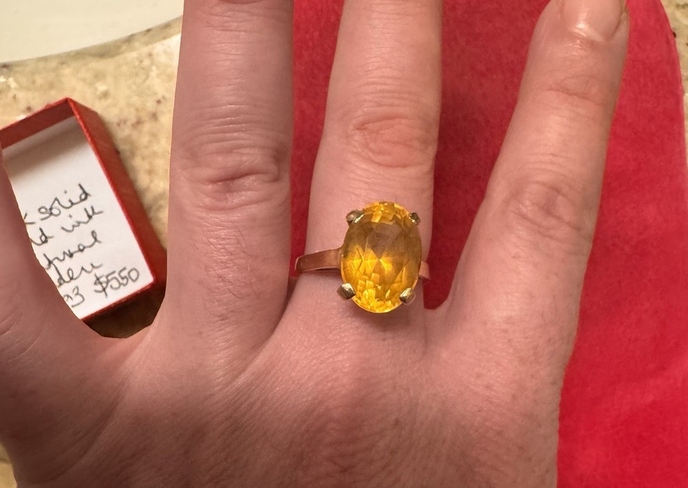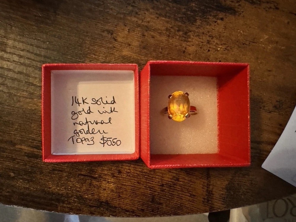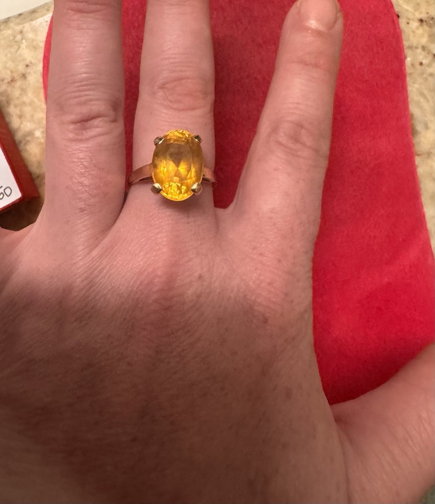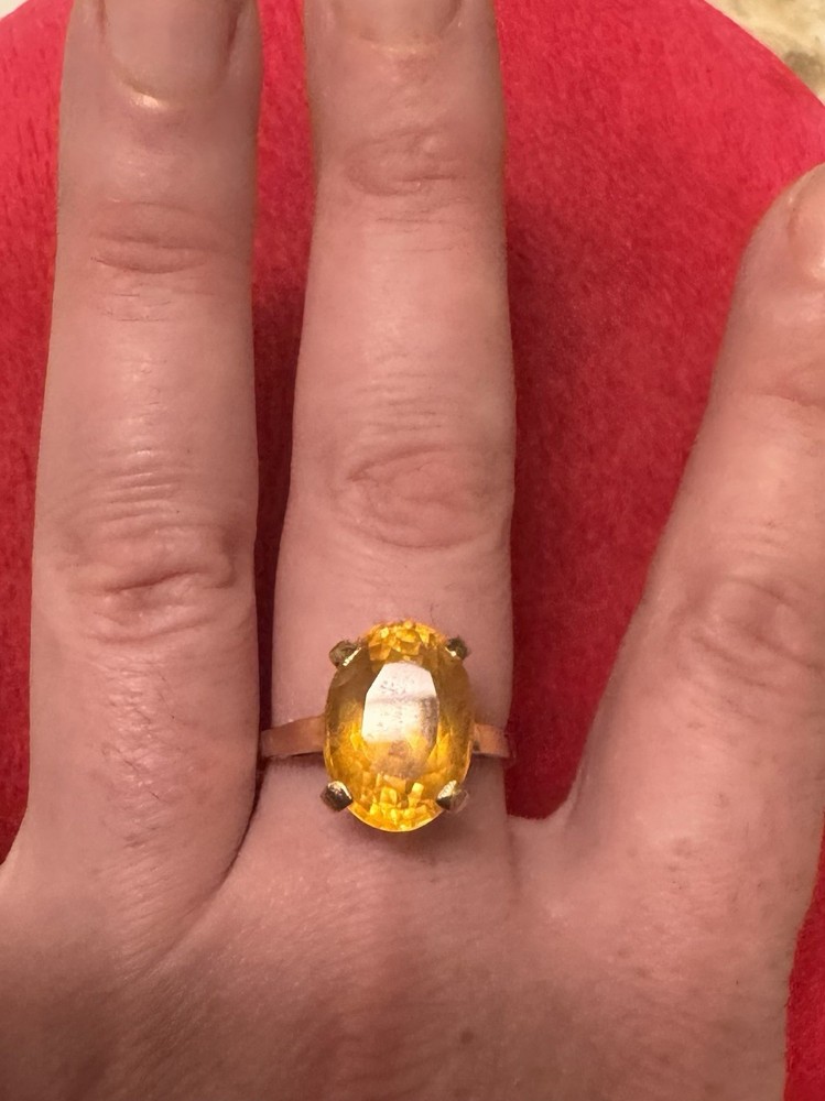 Main Stone:TopazMetal Purity:14kMain Stone Shape:OvalColor:YellowType:RingMaterial:Gold, TopazMetal:Yellow GoldRing Size:9Shape:OvalMain Stone Creation:NaturalMain Stone Color:YellowSetting Style:ProngBrand:Unbranded