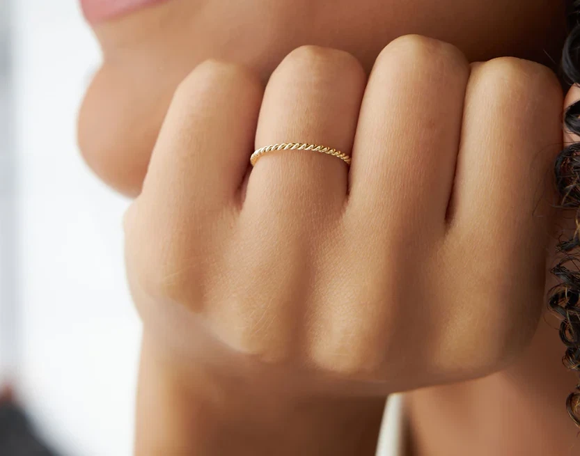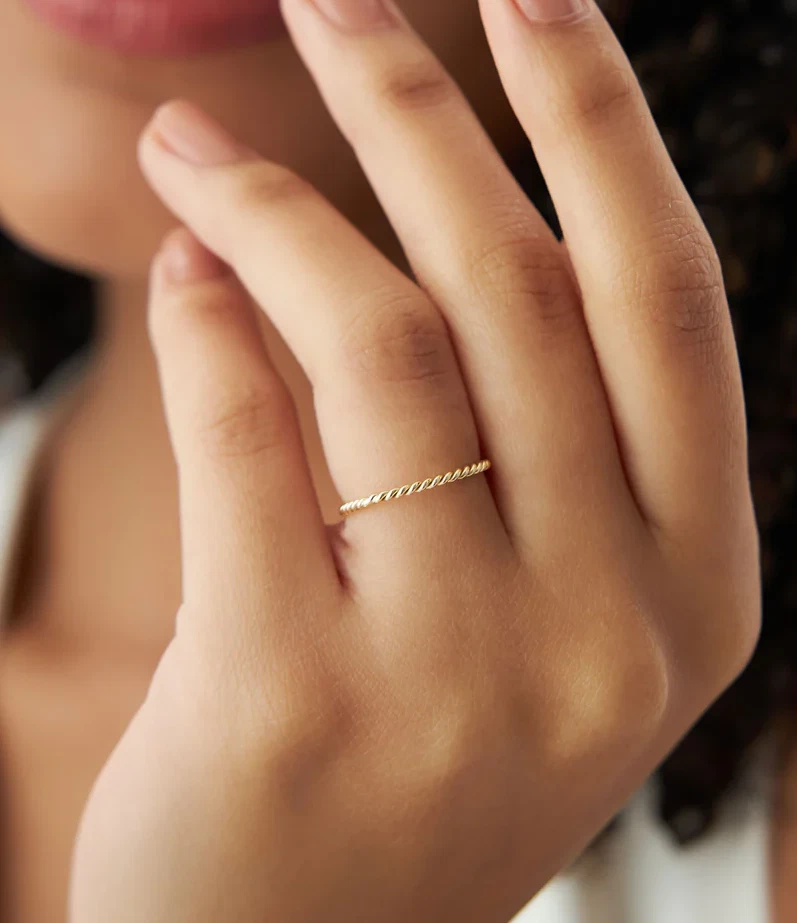 14k Solid Yellow Gold 1mm Rope Twist Ring, Thin Twisted Wedding Band, Dainty Rope Ring Metal: 14k Solid Yellow Gold (If you want White Gold or Rose Gold Please contact us) Ring Width: 1.0mm (Approx.) Ring Size Options: 3 to 9 (Quarter Sizes are available) Comes in a Gift Box Please contact us for any customization requests Thanks for your interest SKU: Z1575