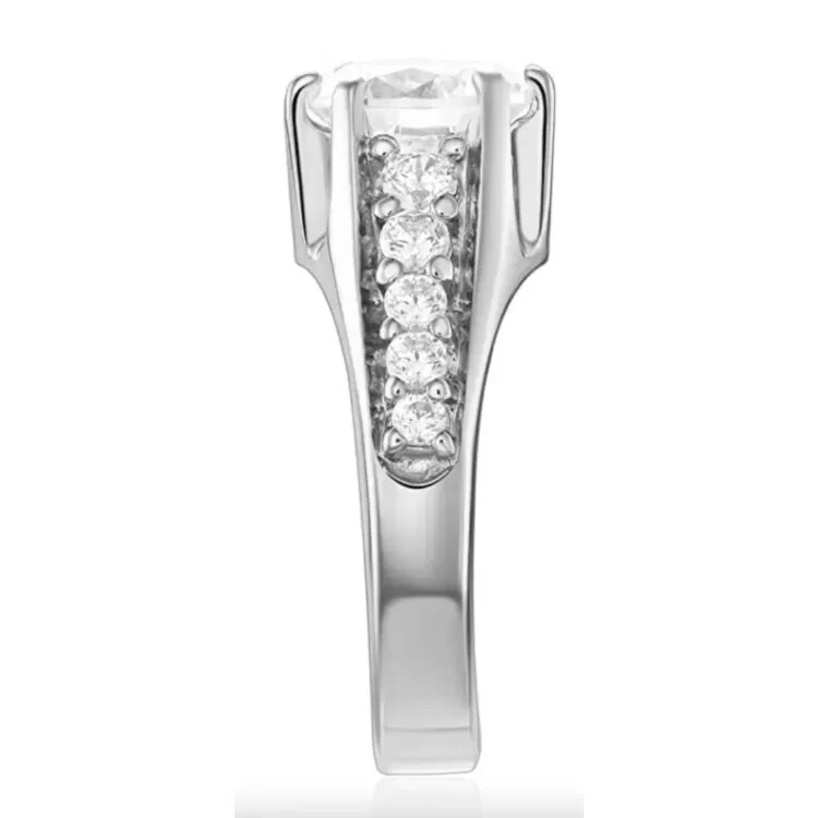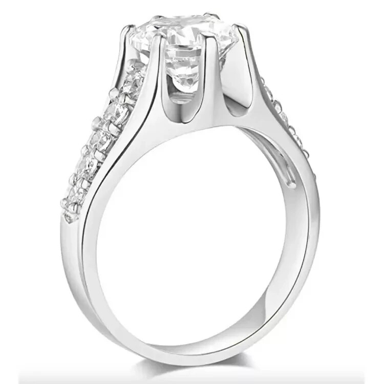 14k White Gold Plated 2.00CT Round Cut Natural Moissanite Engagement Ring