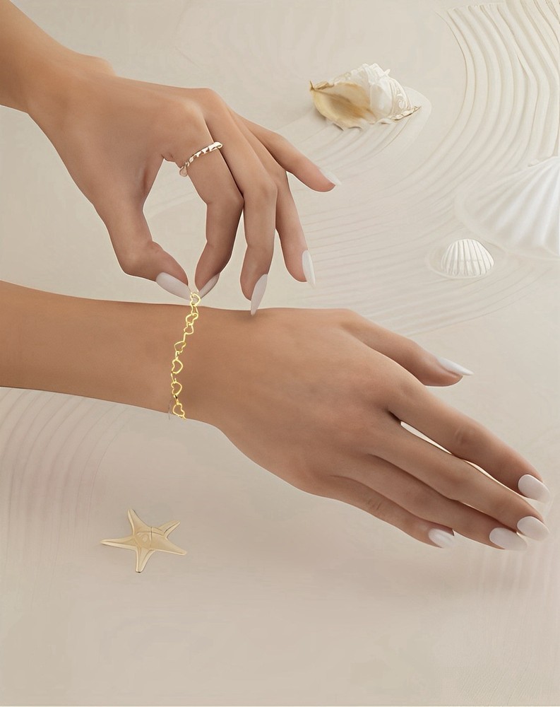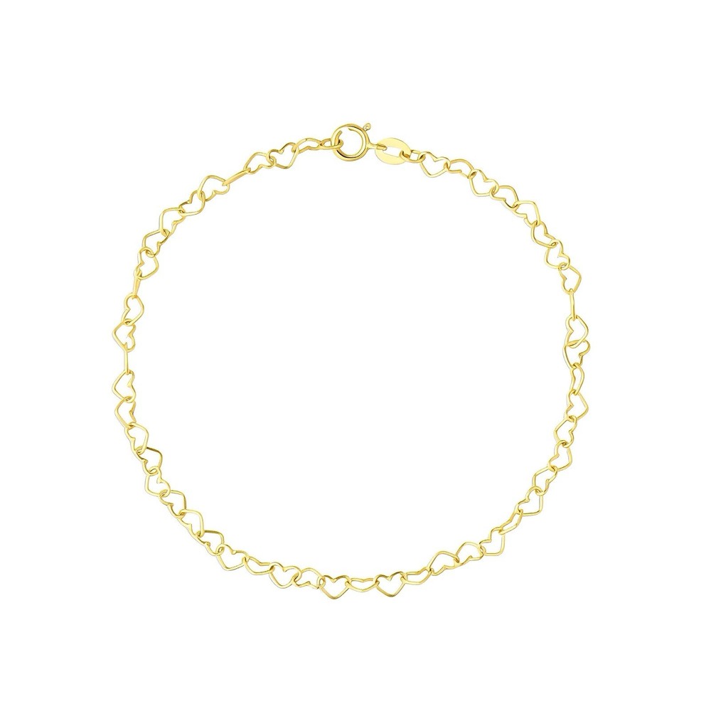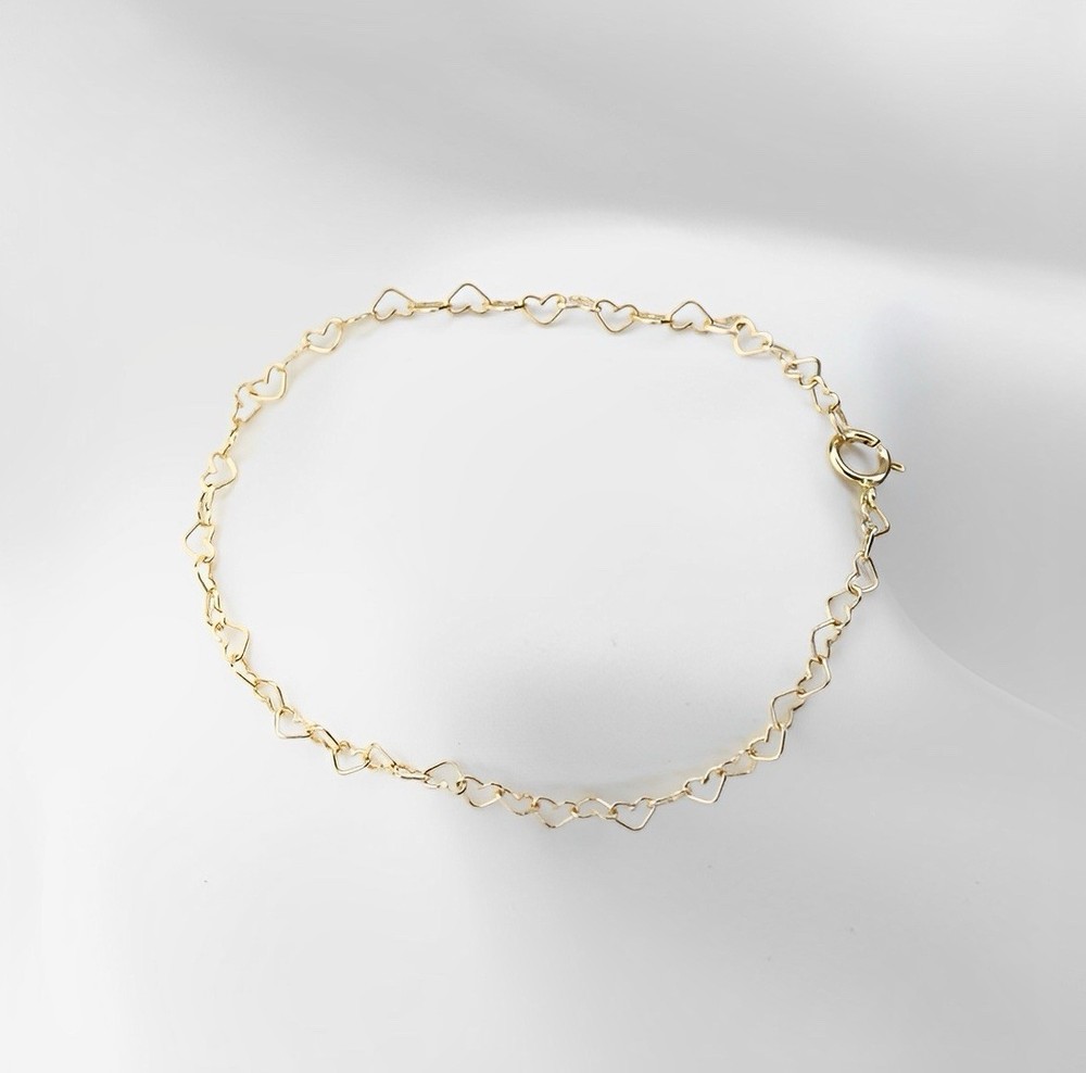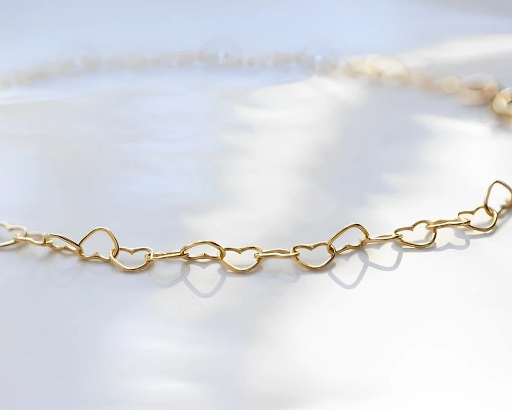 Beautiful and dainty, this piece is perfect for every day wear. Well made and durable this will definitely be your new favorite piece. 14k yellow gold filled and features a round spring clasp. This piece can be worn as a bracelet or an anklet. Please see photo for measurements of each heart. Size 8 Available in any other size upon request. Should you require a different size, please message me prior to purchasing and I will adjust the listing to reflect your requested size.