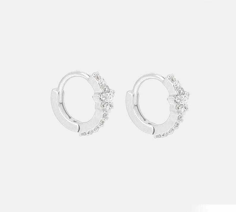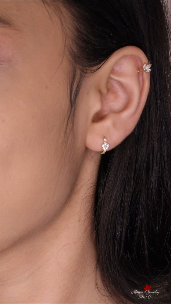 Add elegance to any look with these 14k Yellow Gold Moissanite Flower Huggie Hoop Earrings, featuring dazzling stones and a secure leverback closure. Perfect for any occasion! DESCRIPTION -------------------- • Earring Size: → Earring gauge: 20 → Inner Diameter: 7mm→ Outer diameter: 9mm → Inner Diameter: 8mm→ Outer diameter: 10mm • Moissanite Details: → Shape: Round → Measurement: 1.50 mm + 1.30 mm → Number of Stone: 10 + 12 → Total Ctw: 0.27 → Color: Colorless → Clarity: VVS • Metal Details: → Metal Type: 14k Yellow Gold Warranty and Service: ------------------------------ • We offer a 1 Year warranty on all our Jewelry. • We also provide paid service after completion of the warranty. Thank you for visiting our store, see you soon. --------------------------------------------------------------
