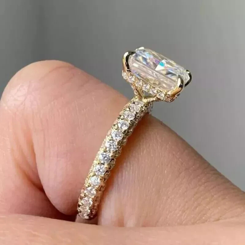 Elevate your special moments with the exquisite 14k Yellow Gold Plated Radiant Cut Natural Moissanite Women's Wedding Ring. Crafted to perfection, this ring features a dazzling 3.50CT white moissanite stone, radiating with the brilliance of a radiant cut. The gold plating provides a luxurious finish, complementing the gem's splendor. Designed for versatility, the ring is available in all sizes, ensuring a perfect fit for every occasion. Whether it's an anniversary, birthday, or any other significant event, this ring is an elegant choice. Personalization is welcomed to make this piece uniquely yours.