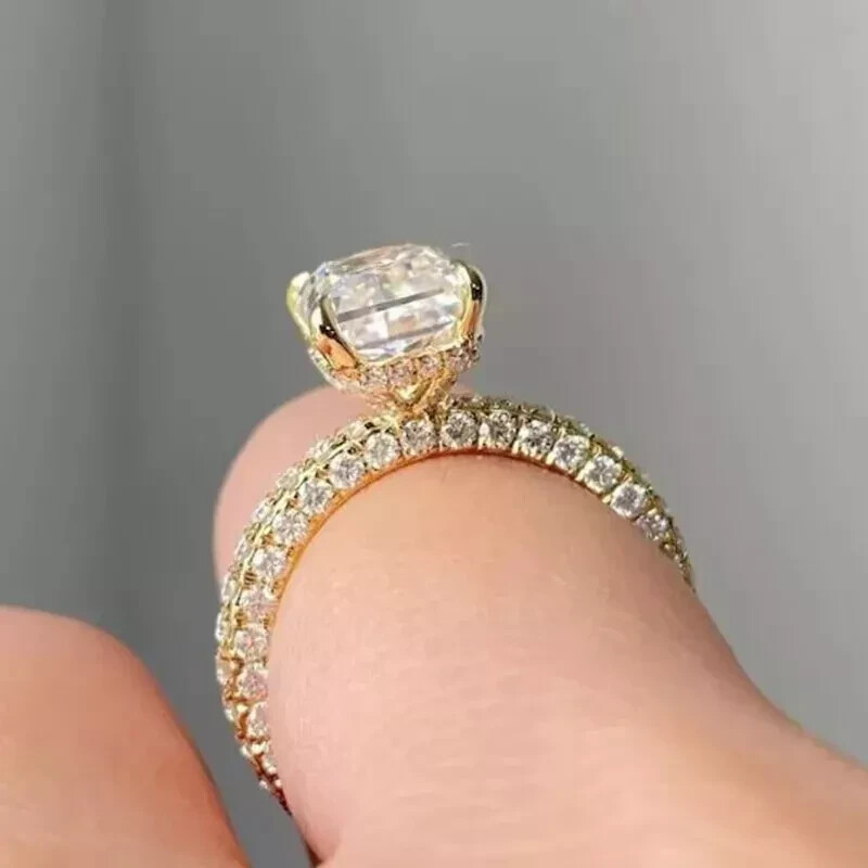 $ 46.463Ct Radiant Cut Natural Moissanite Women's Wedding Ring 14k Yellow Gold Plated