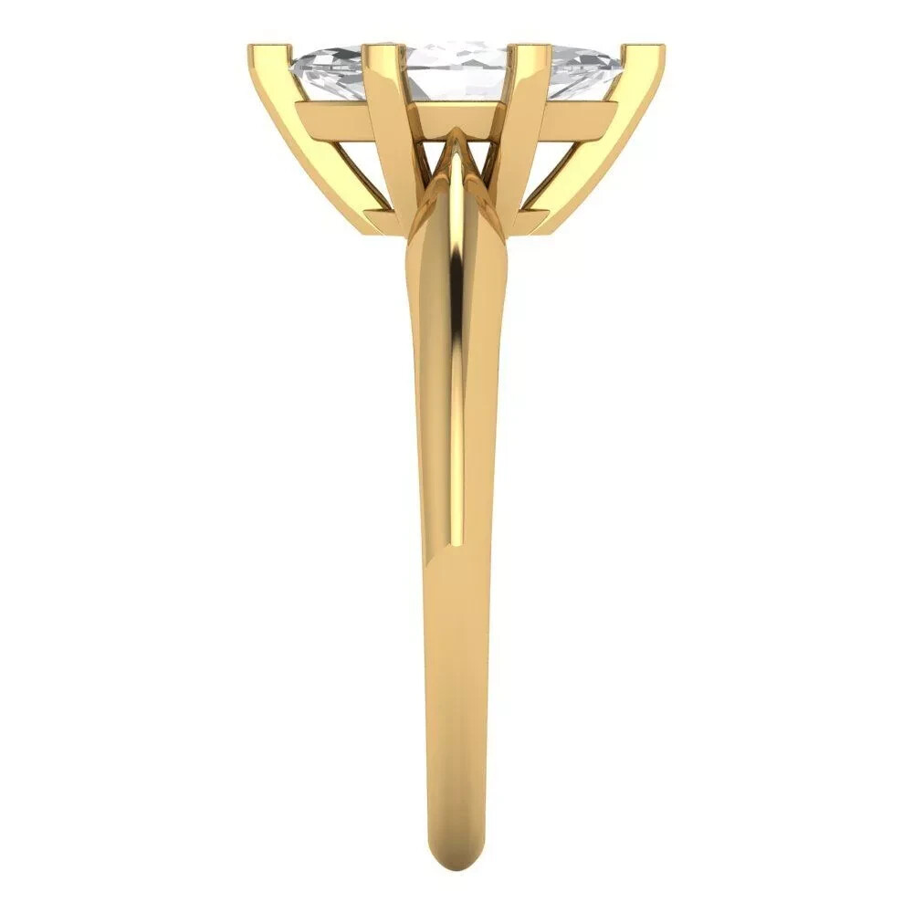 Crafted for a touch of elegance, this 14k Yellow Gold Plated ring is a stunning testament to timeless design. It showcases a 2.00CT marquise-cut natural moissanite, radiating a brilliance akin to the purest diamond. The stone is complemented by a pair of side diamonds, enhancing the ring's sparkle and adding a romantic flair. With its prong setting, the ring guarantees a secure hold on the premium-grade stones, each chosen for their loupe-clean clarity and excellent cut. The piece is a blend of expert craftsmanship and style, suitable for various occasions from anniversaries to birthdays, making it a versatile choice for those looking to celebrate love.