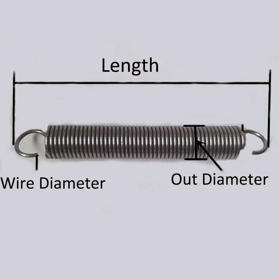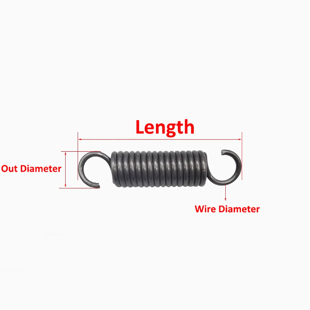 Description Material: 65Mn Spring Steel Size: Wire diameter*Out Diameter*Length Internal Diameter =Out Diameter - 2 * Wire Diameter ( For example ,Size 1.4*8*60 mm,means the wire diameter is 1.4mm,the out diameter is 8mm, the length is 60mm,the Internal Diameter is 5.2mm.) The Length includes the hook Package include: According to your choice.