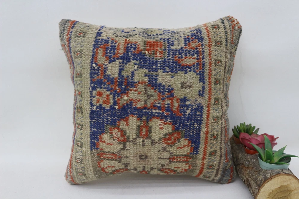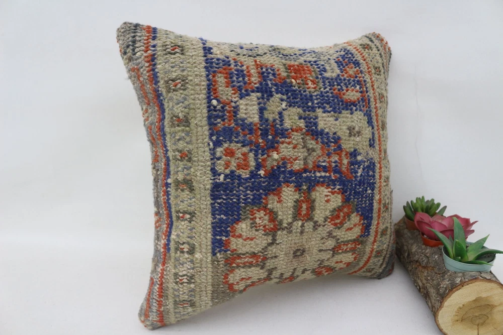 14"x14" Blue Pillow Case, Home Decor Pillow, Cushion, Antique Pillows
