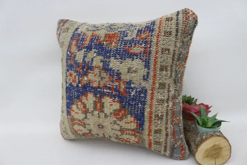 Kilim Pillow Details: All of my beautiful pillow covers or cushion cases are designed and made by me. I am making my throw pillow covers from handmade vintage rugs, Turkish rugs. Therefore, each of my vintage kilim pillowcase is one of kind. These cushions covers are piece of an art. The size of this pillow is 14 x 14 inches or 35 x 35 cm. The front side of this decorative pillow cover, cushion cover is wool on wool vintage kilim rug. The backside of this throw is high quality cotton fabric with a high quality zipper. This listing has 2 option for this handmade pillow. You can choose with insert or without insert. The listing photos is with insert in the pillowcase which is just for demonstration purpose. All of my vintage Turkish rugs have been professionally washed before I cut them as pillow case or cushion case so these kilim covers are 100 posent clean and ready to use. Due to the age and handmade nature of these vintage rugs, there might be imperfections and flaws that are not considered defects. This is a piece of a handmade vintage rug with minor signs of wear consistent with age and use that give it an antique look. You can see the condition of the rug pillow clearly in the detailed photos. I am going to ship your order of decorative pillow as soon as possible. I usually ship in the next day with DHL Express or FedEx which will deliver the kilim pillow, cushion cover just in 3-5 business days. It is my responsible until you receive pillow cover or pillow cover with insert at your door. If the pillow cover or insert get lost or damage during the shipping, I will ship the new kilim pillow cover or pillow insert for free as soon as possible. I take photos of my throw pillows indoor with professional camera which shows the real colors. The photos of these Turkish pillow covers are not altered. Keep in mind the colors of the rug vary slightly in different lights. Please contact to me for additional photos. I take the photos of my vintage rugs outside with daylight to show you the real and natural colors. My photos are not altered. Keep in mind the colors of the rug vary slightly in different lights. Please contact to me for additional photos. SATISFACTION GUARANTEED for your order in my shop. Your SATISFACTION is the most important to me. Please write me if you have any question or if you don't like anything from my pillow covers, cushion covers. If any reason, you are not happy from your Turkish pillow cover, I accept return without any hassle. Please read my shop policies for details. This cushion case or pillow cover can be used as decorative throw pillow, gift pillow, Christmas pillow case, bedding pillow, lumbar pillow, sofa pillow, bohemian pillow, boho pillow. You can find in any kind of Turkish kilim pillow cover in different design such as striped pillow, embroidered pillow, and geometric pillow.