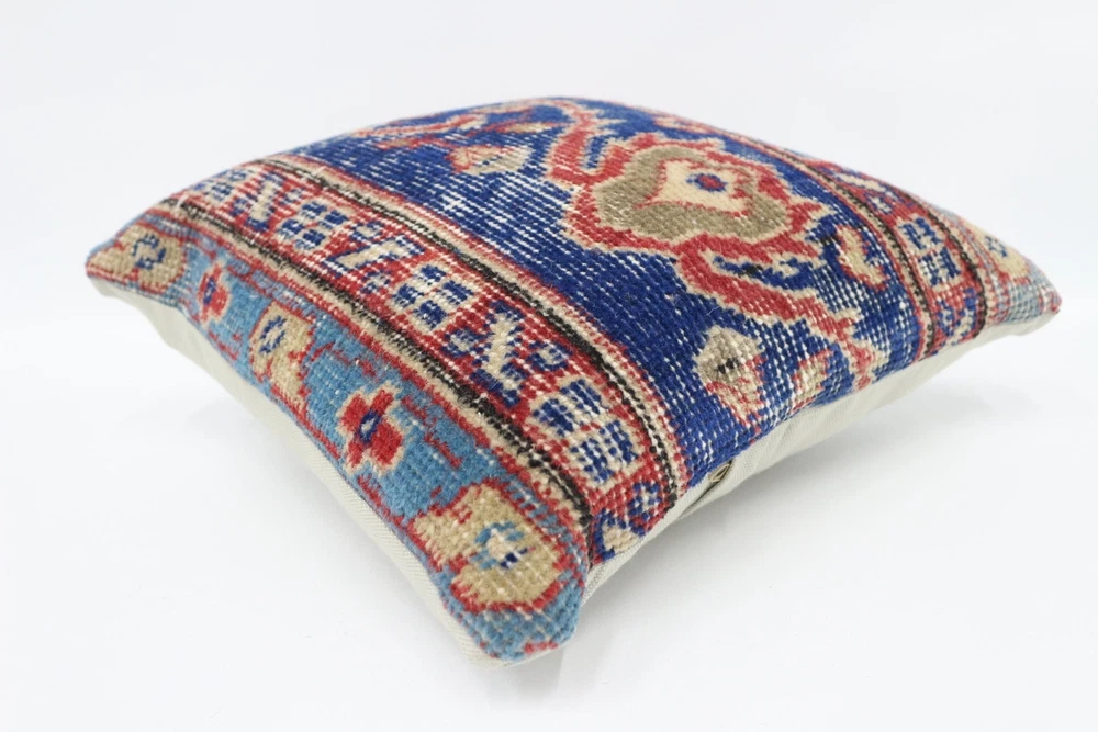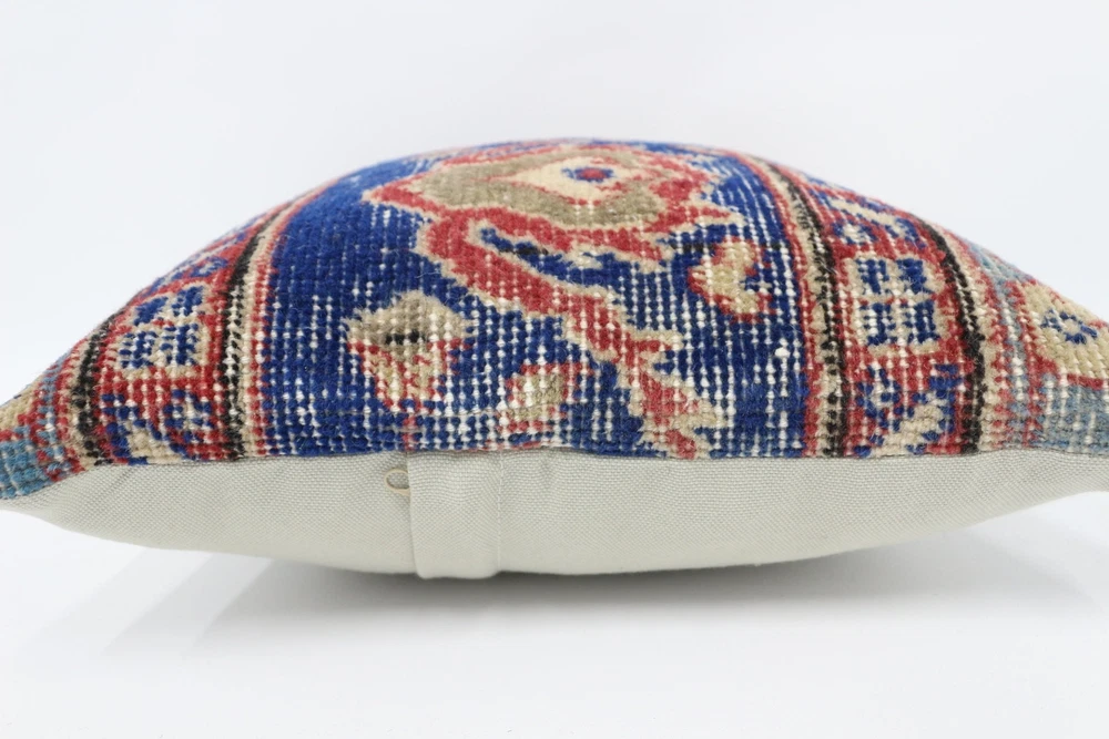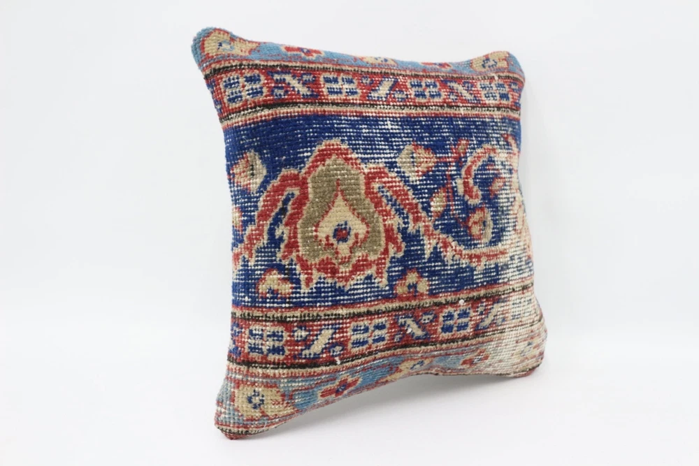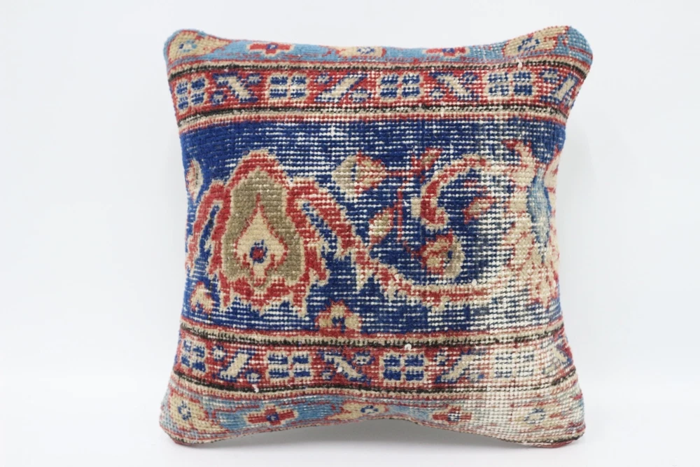 14"x14" Blue Pillow Sham, Home Decor Pillow, Vintage Kilim Pillow