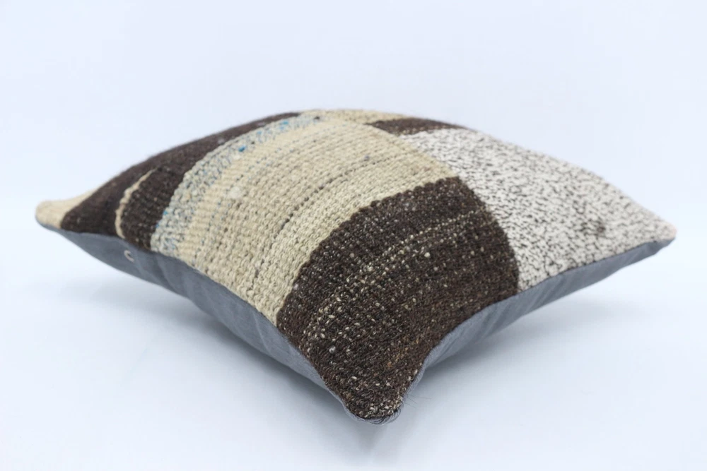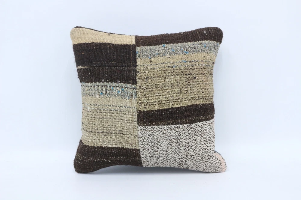 14"x14" Brown Pillow Cover, Kilim Pillow Cover, Vintage Kilim Pillow