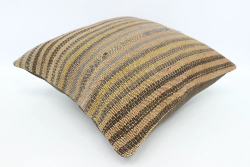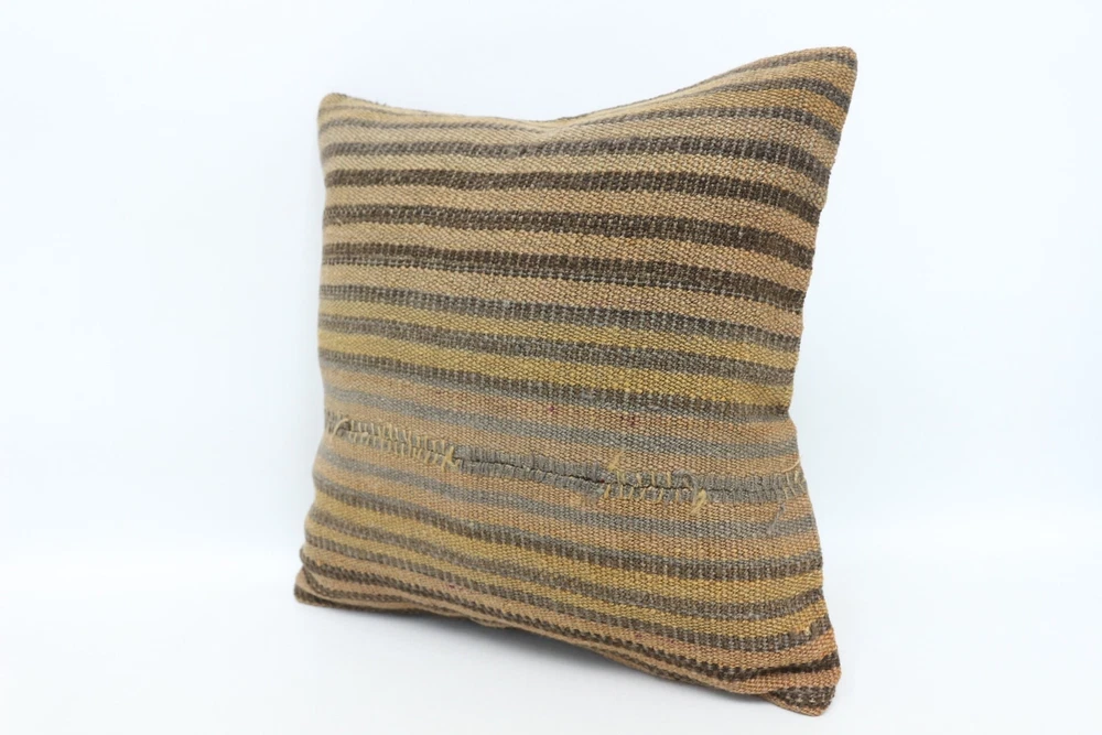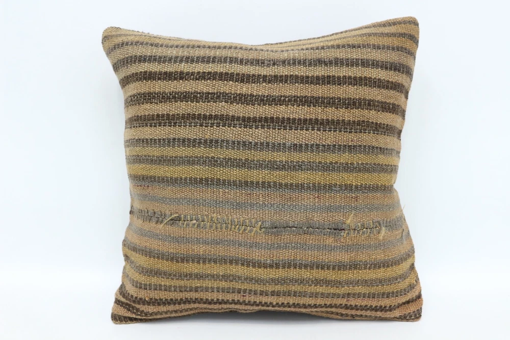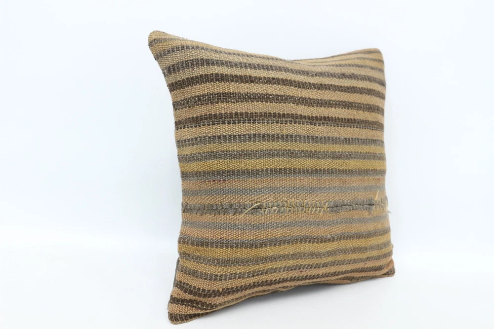 14"x14" Brown Pillow, Ethnical Kilim Rug Pillow, Turkish Kilim Pillow