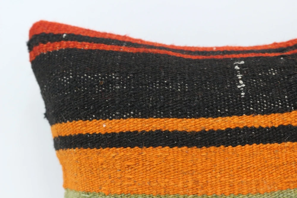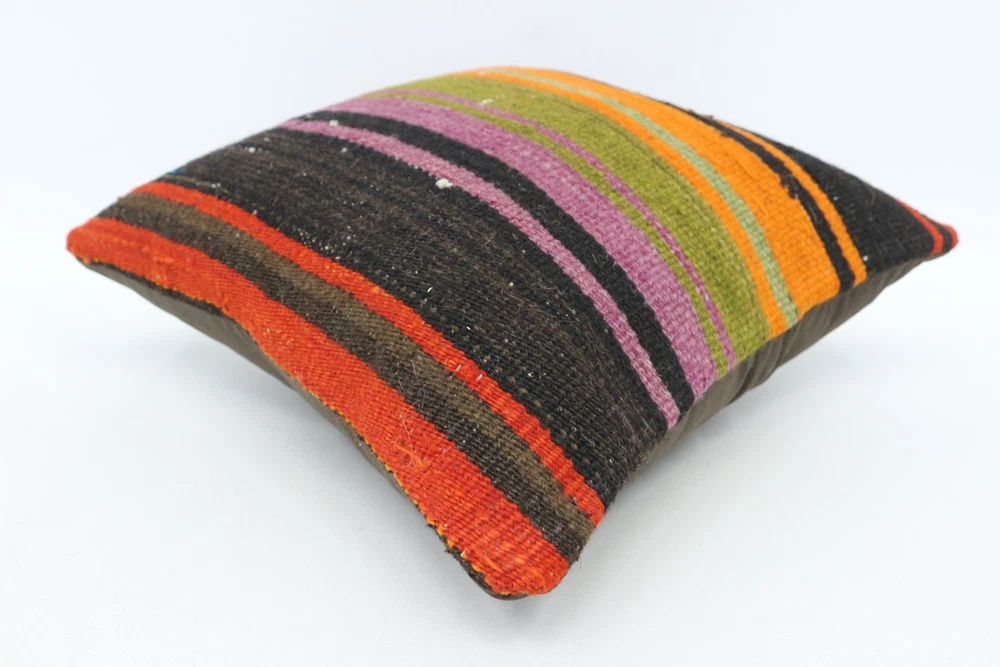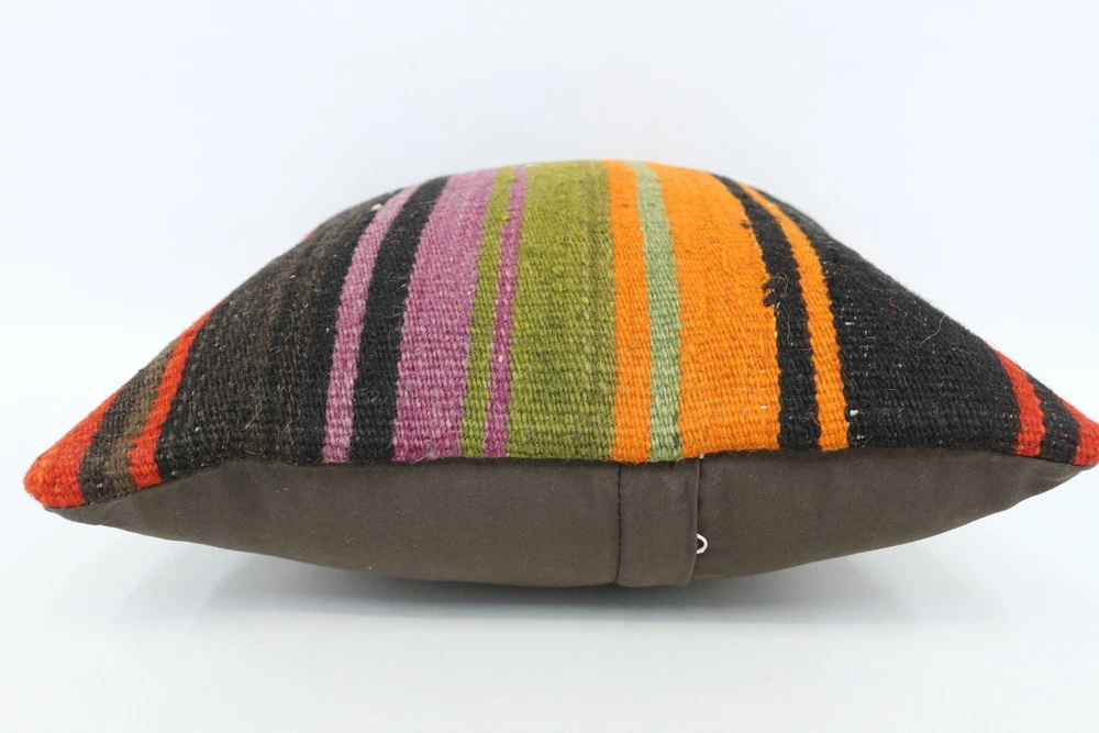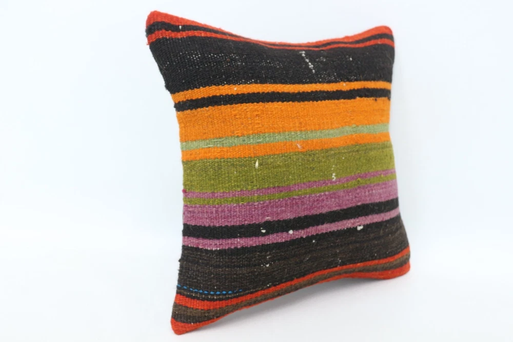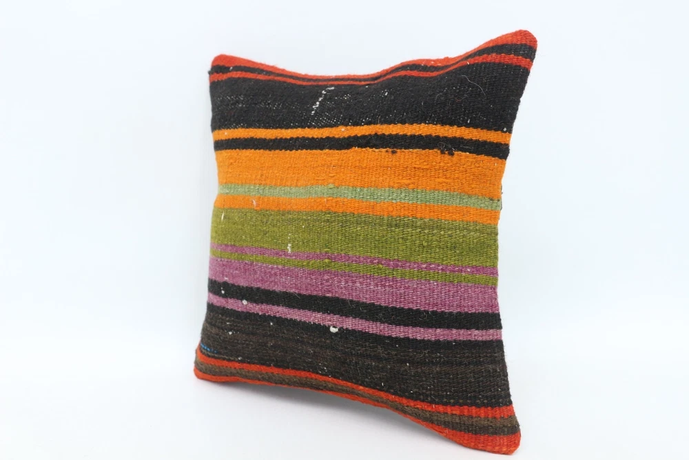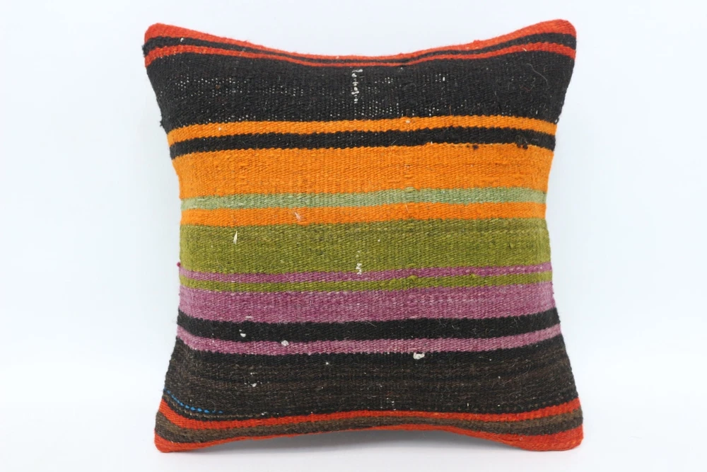 Kilim Pillow Details: All of my beautiful pillow covers or cushion cases are designed and made by me. I am making my throw pillow covers from handmade vintage rugs, Turkish rugs. Therefore, each of my vintage kilim pillowcase is one of kind. These cushions covers are piece of an art. The size of this pillow is 14 x 14 inches or 35 x 35 cm. The front side of this decorative pillow cover, cushion cover is wool on wool vintage kilim rug. The backside of this throw is high quality cotton fabric with a high quality zipper. This listing has 2 option for this handmade pillow. You can choose with insert or without insert. The listing photos is with insert in the pillowcase which is just for demonstration purpose. All of my vintage Turkish rugs have been professionally washed before I cut them as pillow case or cushion case so these kilim covers are 100 posent clean and ready to use. Due to the age and handmade nature of these vintage rugs, there might be imperfections and flaws that are not considered defects. This is a piece of a handmade vintage rug with minor signs of wear consistent with age and use that give it an antique look. You can see the condition of the rug pillow clearly in the detailed photos. I am going to ship your order of decorative pillow as soon as possible. I usually ship in the next day with DHL Express or FedEx which will deliver the kilim pillow, cushion cover just in 3-5 business days. It is my responsible until you receive pillow cover or pillow cover with insert at your door. If the pillow cover or insert get lost or damage during the shipping, I will ship the new kilim pillow cover or pillow insert for free as soon as possible. I take photos of my throw pillows indoor with professional camera which shows the real colors. The photos of these Turkish pillow covers are not altered. Keep in mind the colors of the rug vary slightly in different lights. Please contact to me for additional photos. I take the photos of my vintage rugs outside with daylight to show you the real and natural colors. My photos are not altered. Keep in mind the colors of the rug vary slightly in different lights. Please contact to me for additional photos. SATISFACTION GUARANTEED for your order in my shop. Your SATISFACTION is the most important to me. Please write me if you have any question or if you don't like anything from my pillow covers, cushion covers. If any reason, you are not happy from your Turkish pillow cover, I accept return without any hassle. Please read my shop policies for details. This cushion case or pillow cover can be used as decorative throw pillow, gift pillow, Christmas pillow case, bedding pillow, lumbar pillow, sofa pillow, bohemian pillow, boho pillow. You can find in any kind of Turkish kilim pillow cover in different design such as striped pillow, embroidered pillow, and geometric pillow.