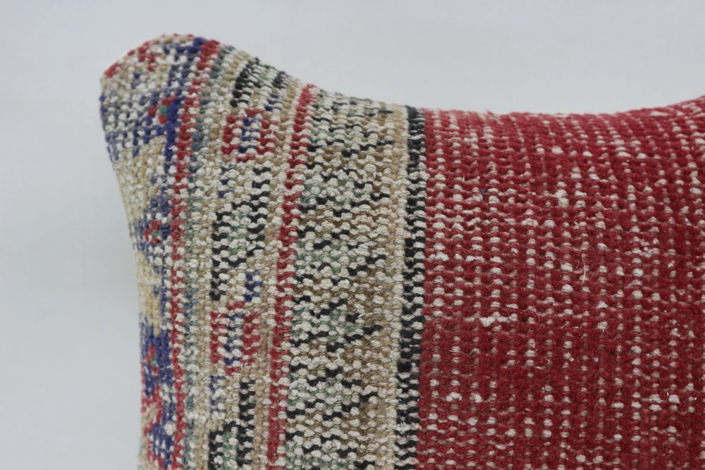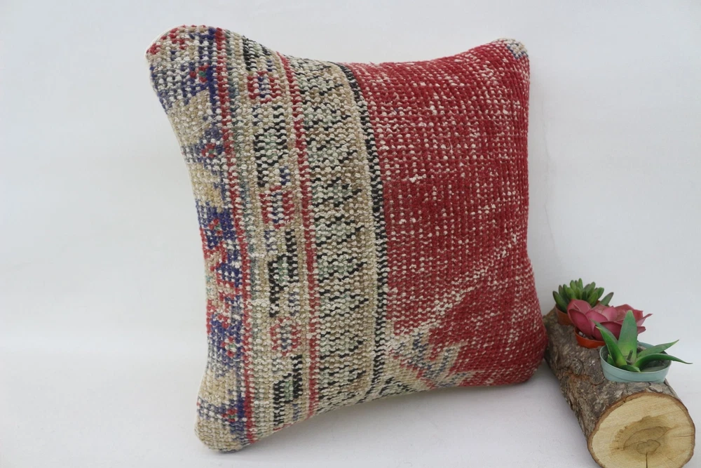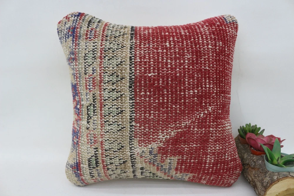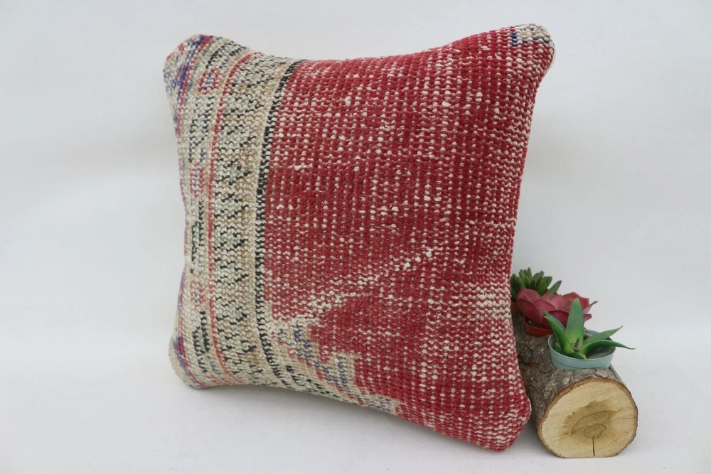 14"x14" Red Cushion Cover, Antique Pillows, Kilim Pillow Cover, Turkish Pillow