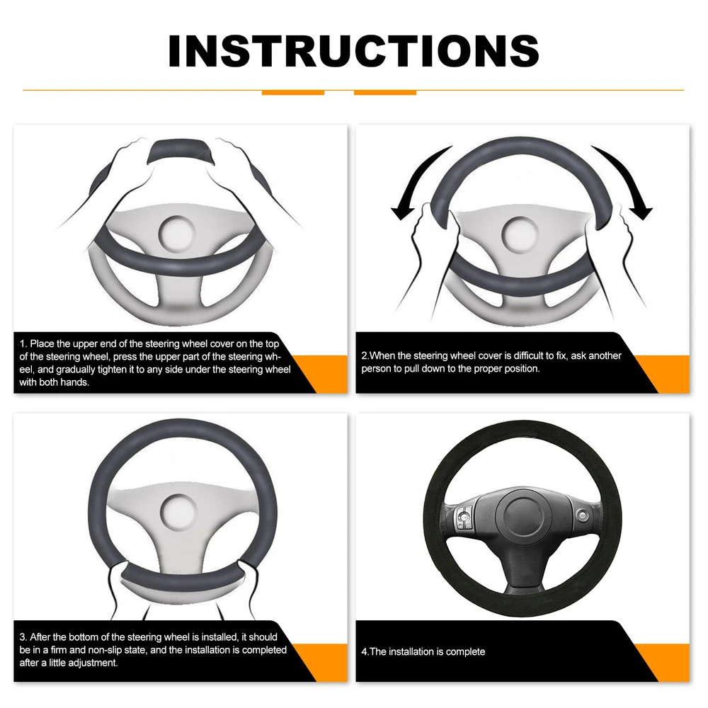 DIY Universal 38cm Black Carbon Leather Car Steering Wheel Cover+Needle Thread
