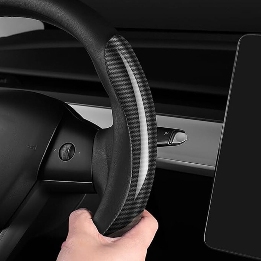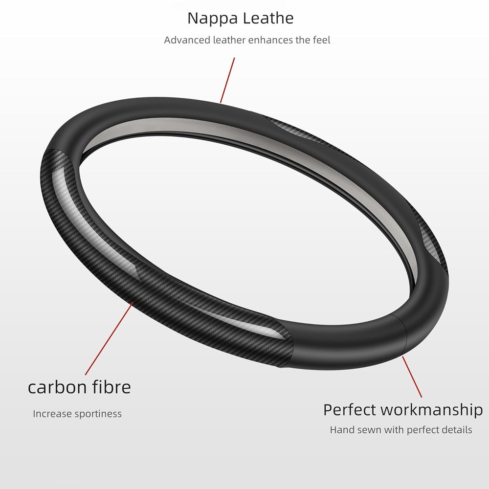Please confirm it fits your steering wheel before making order. Thank you. Descriptions: 100% Brand New Material: Carbon Fiber Leather Size: 15" & 38cm (Fit for 14.5-15" round steering wheel) Color: Black / White Default the black cover. Contact for white cover if want. Features: 1.Attractive and Durable 2.Elegance and luxury design, fashion and practical combination. 3.Top quality soft touch leather and carbon fiber, add comfort, safety and protection for your journey. 4.Ergonomic design provides excellent grip, skidproof with tyre pattern and dotted design. 5.Comfortable hand feel, massage your palm to relieve drive fatigue, suitable for all season. Packaging included: 1 x Steering Wheel Cover