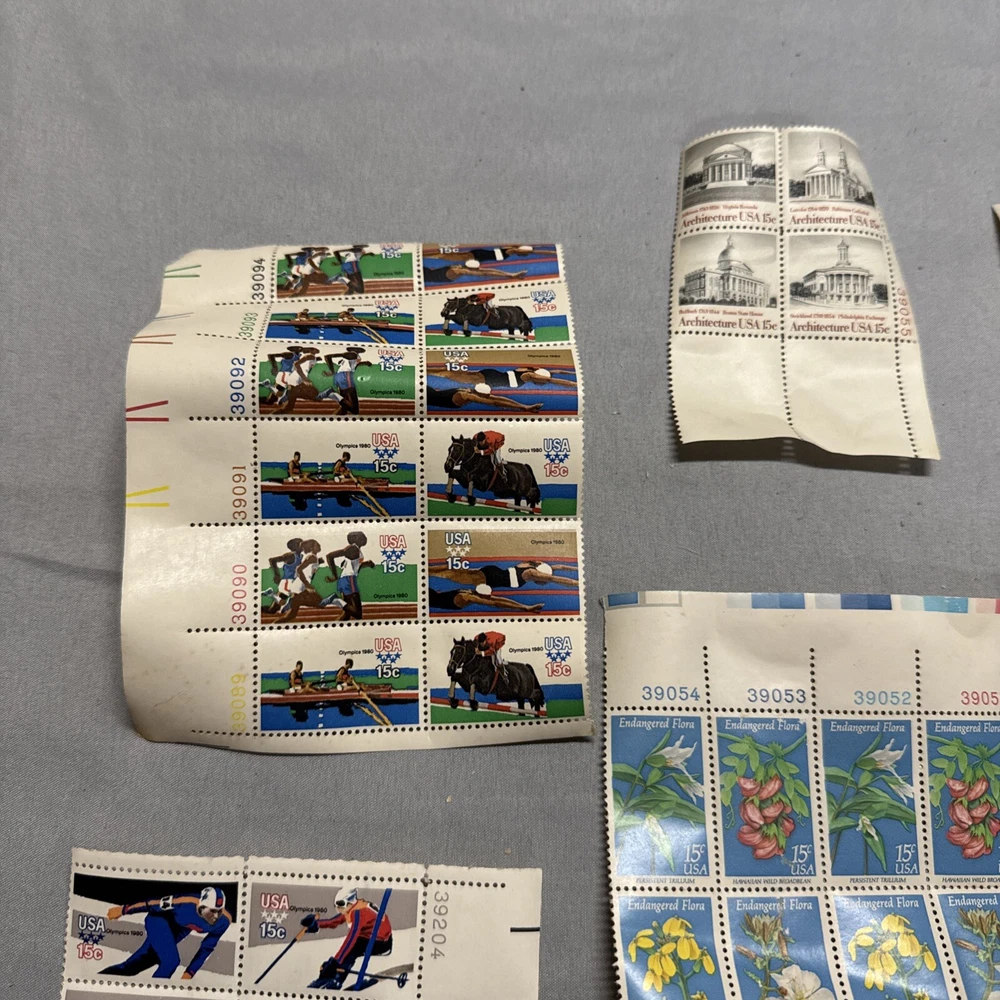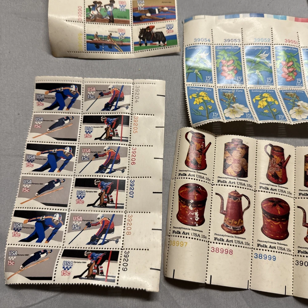 15 Cent Stamp Lot 9 Varieties 1970's Olympic, Mlk Jr, Folk Art